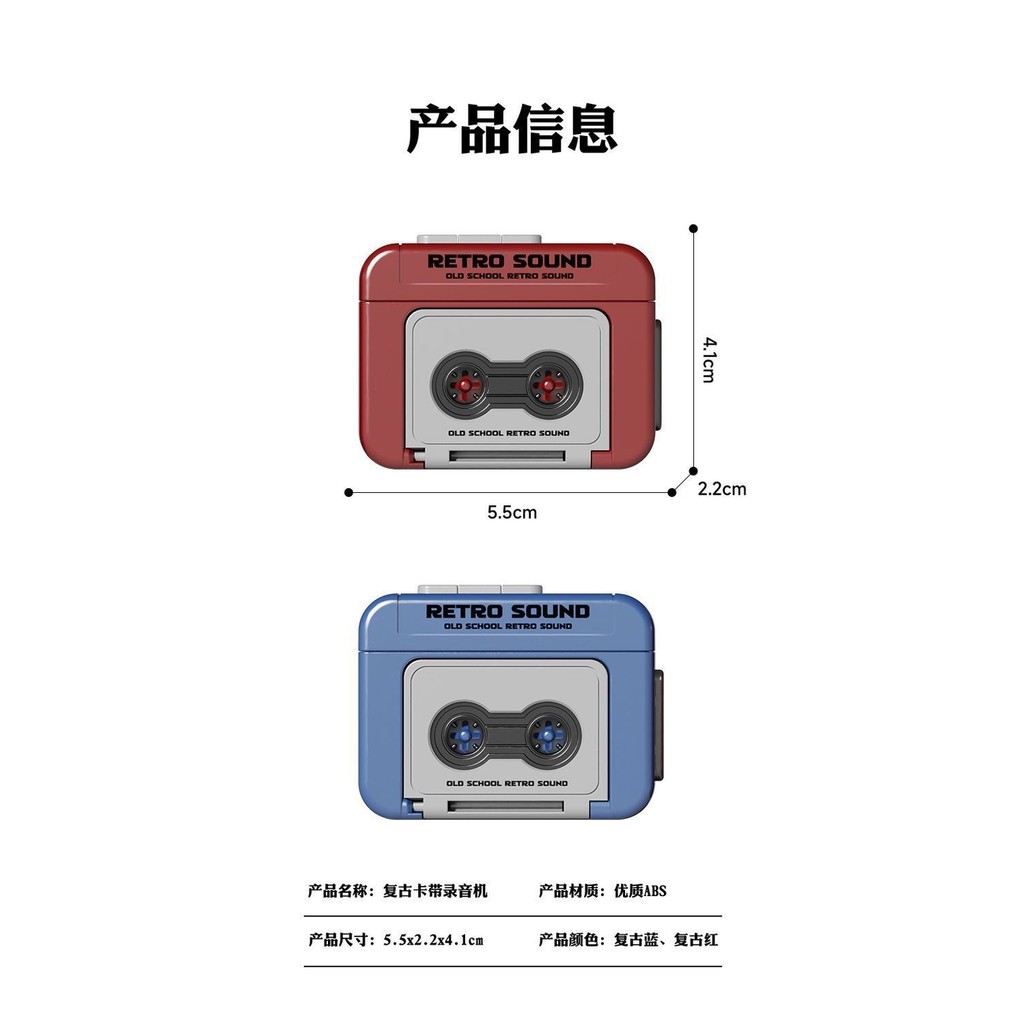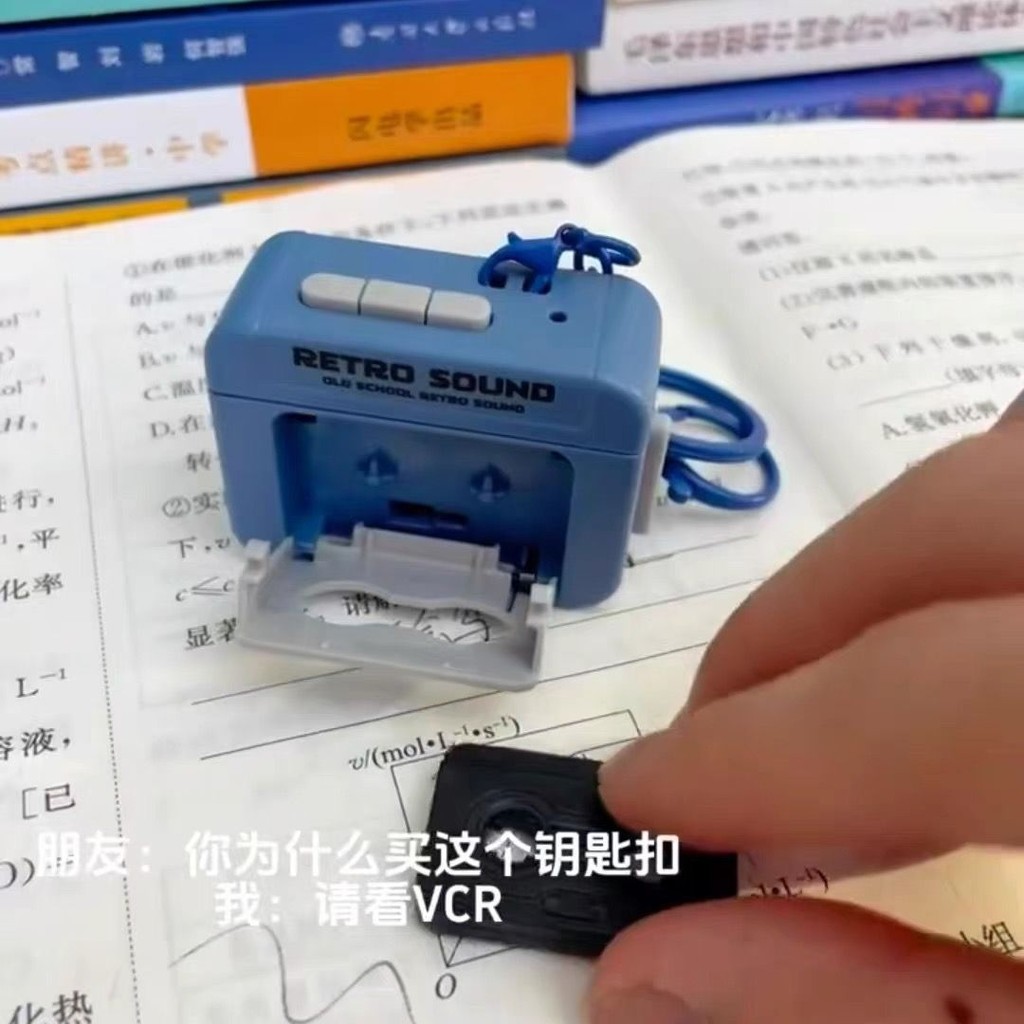 Media player Radio player cassette player Retro Mini Recorder Recordable Fun Music Box Decoration Keychain Pendant Audio Mini Retro Old-fashioned VTOT