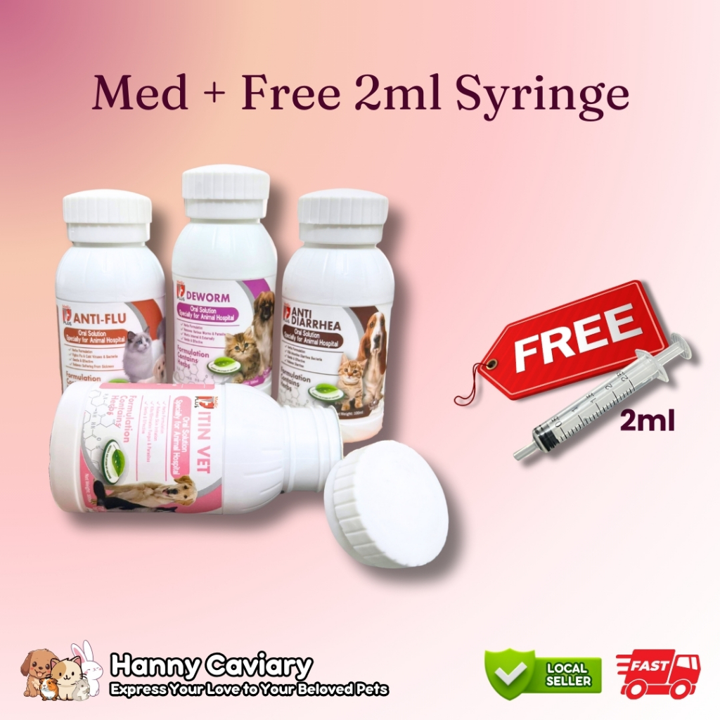 Medic Plus All-In-One Set - Deworm/Anti Flu/Anti Diarrhea/Anti Fungus for Pet (100ml) [Free 2ml Syringe]