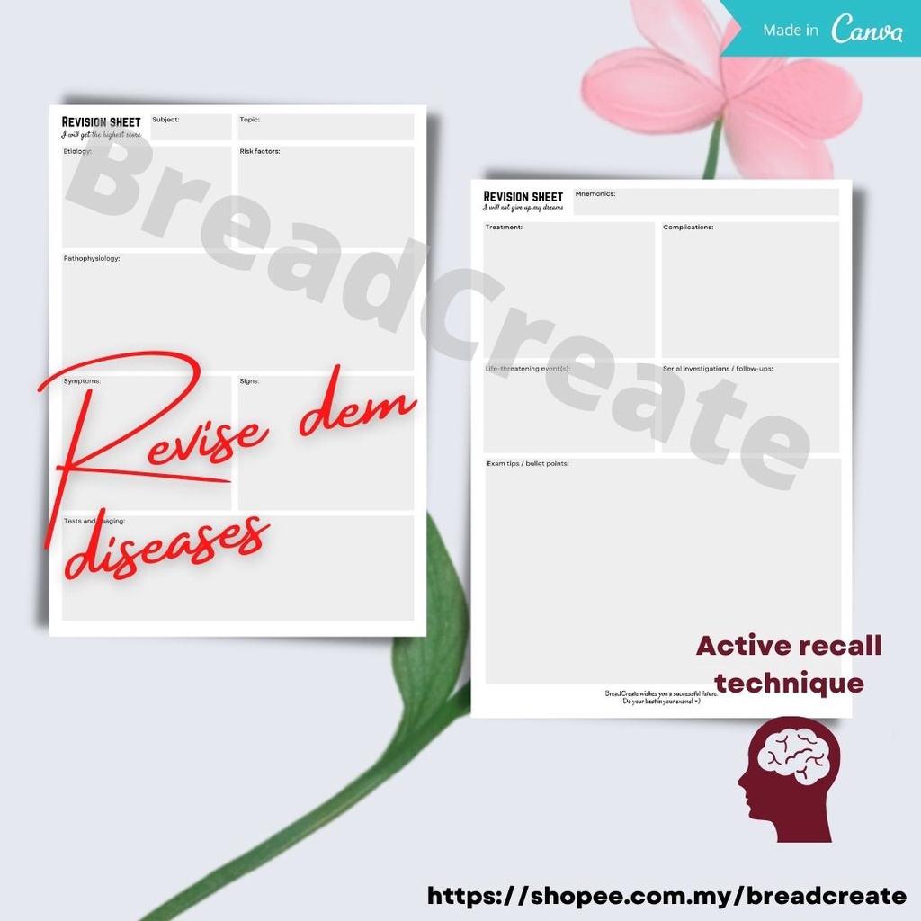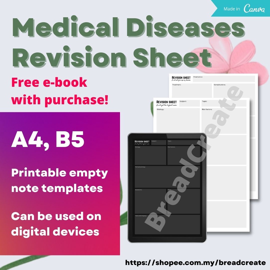 Medical Disease Revision Note Sheet Template with Free E-Book Gift: Medicine Clinical Editable Printable Digital Study
