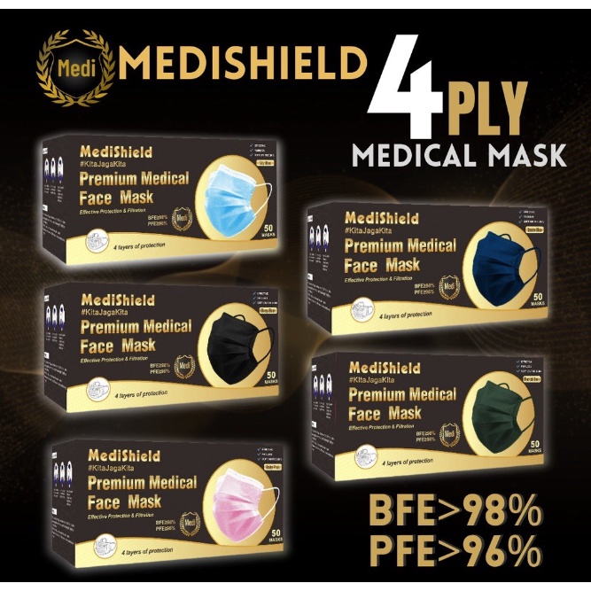 Medical Face Mask 4ply 50pcs MEDISHIELD/RESPACK 4ply Colour Mask Premium high quality face mask