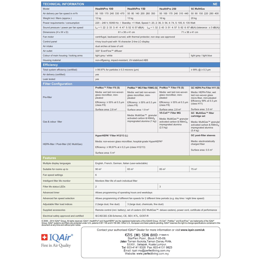 Medical Grade Air Purifier- IQAir HealthPro 250NE c/w 3 YEARS LOCAL WARRANTY