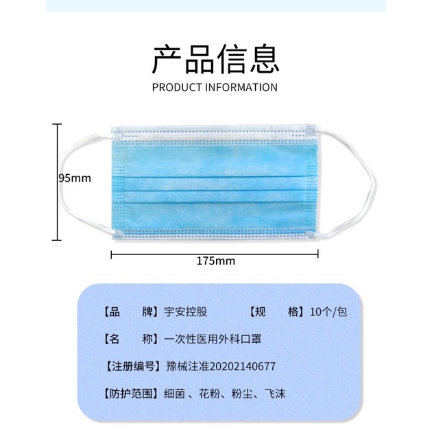 Medical Surgical Face Mask 3ply Adult Blue Earloop