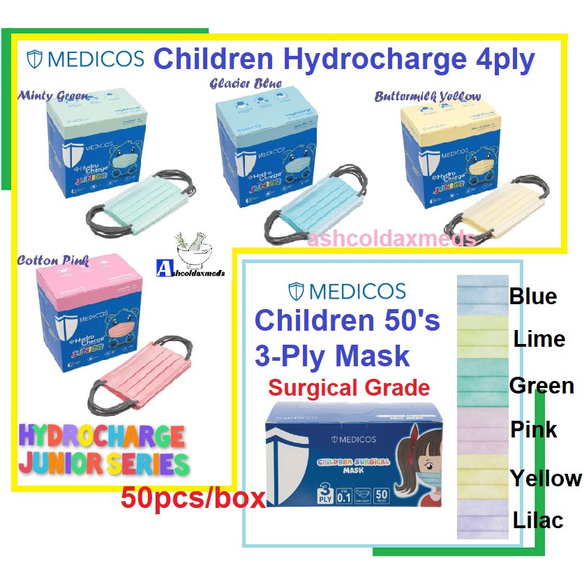 Medicos Children (Kids) 3 ply Surgical Mask 50s/or Medicos Hydrocharge Junior 4-ply 50s