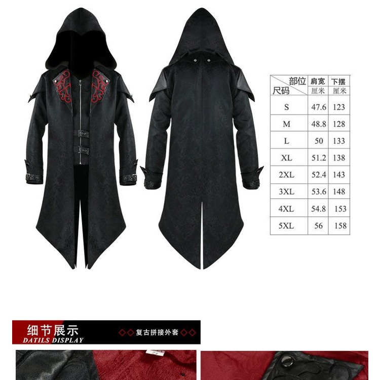 Medieval Retro Assassin's Creed Halloween cos Cloak Gothic Punk Uniform Prom Gown11.8