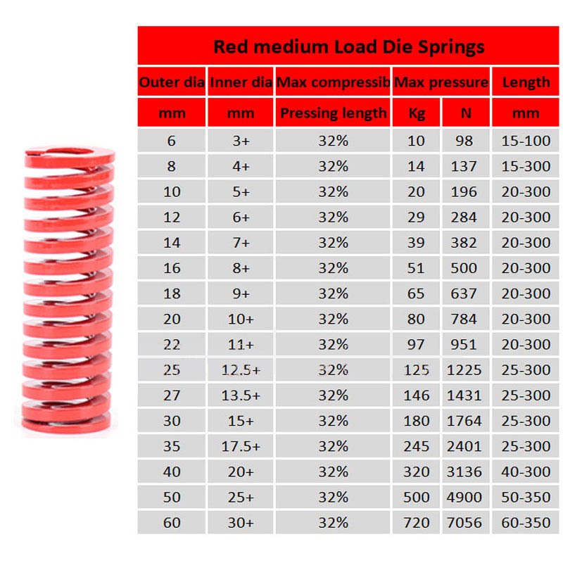 Medium Load Die Mold Springs Red Compression Spring Outer Dia 12 14 16mm Length 20 - 150mm