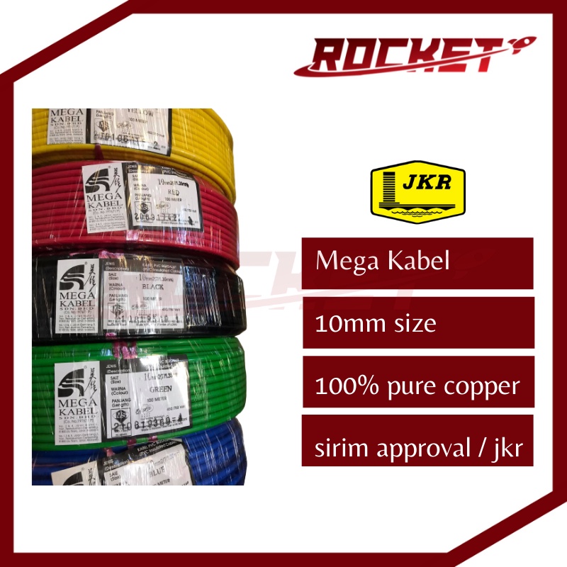 Mega Kabel 10mm Insulated PVC 100% Pure Copper Cable SIRIM approve JKR spec Kable