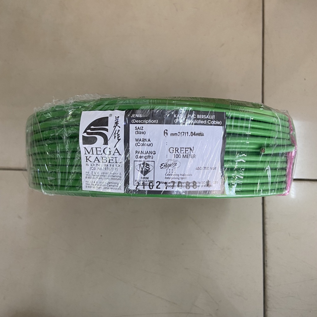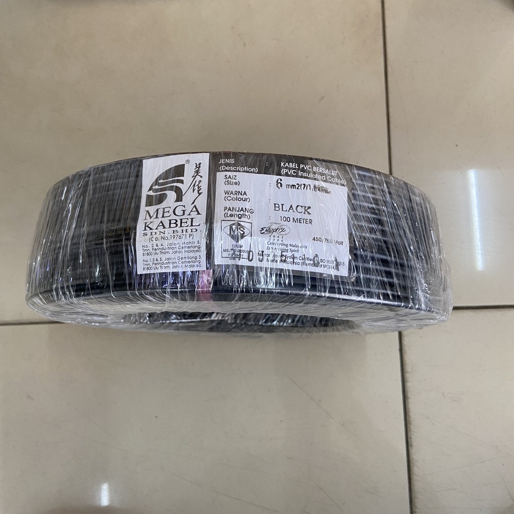 Mega Kabel 6mm PVC Insulated Cable (SIRIM Certified) Ready Stock Lowest Price Best Quality