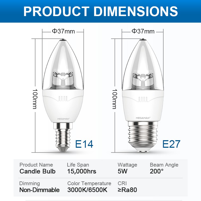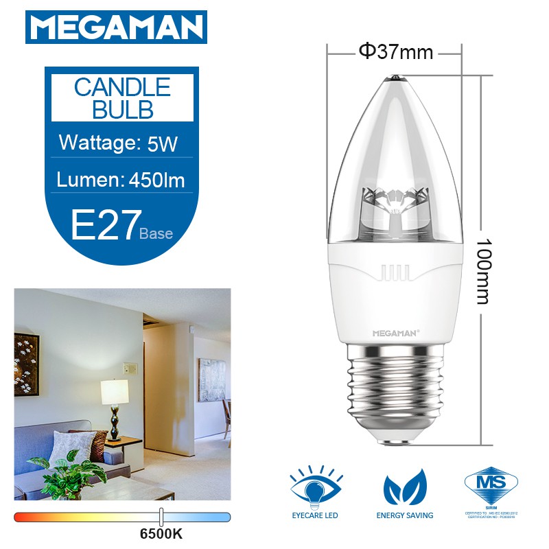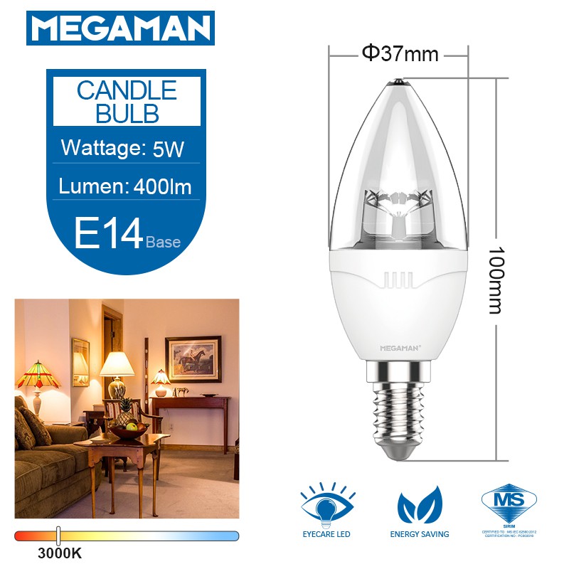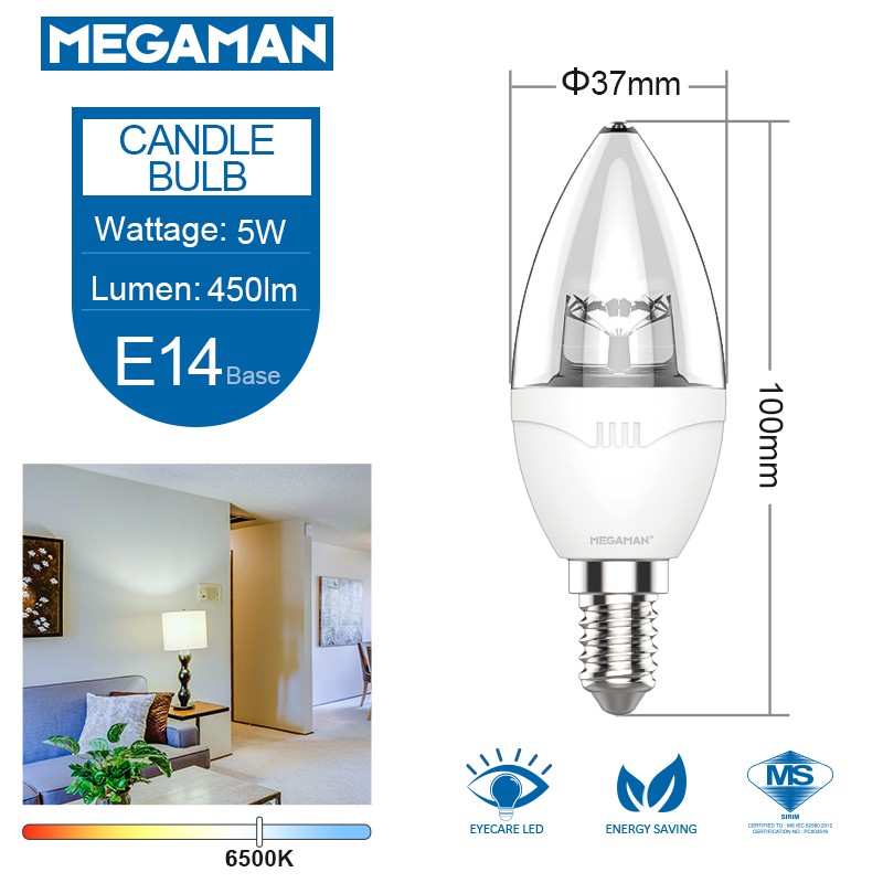 Megaman LED Candle Light Bulb Energy Saving - Natural Color Warm White (5W/3000K/6500K) E14/E27