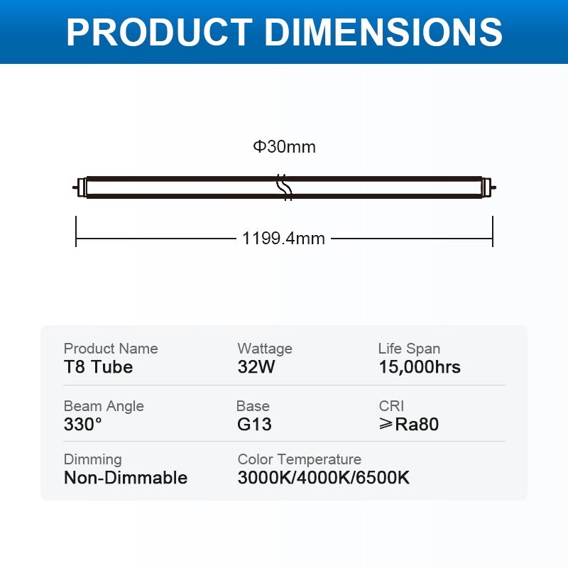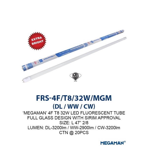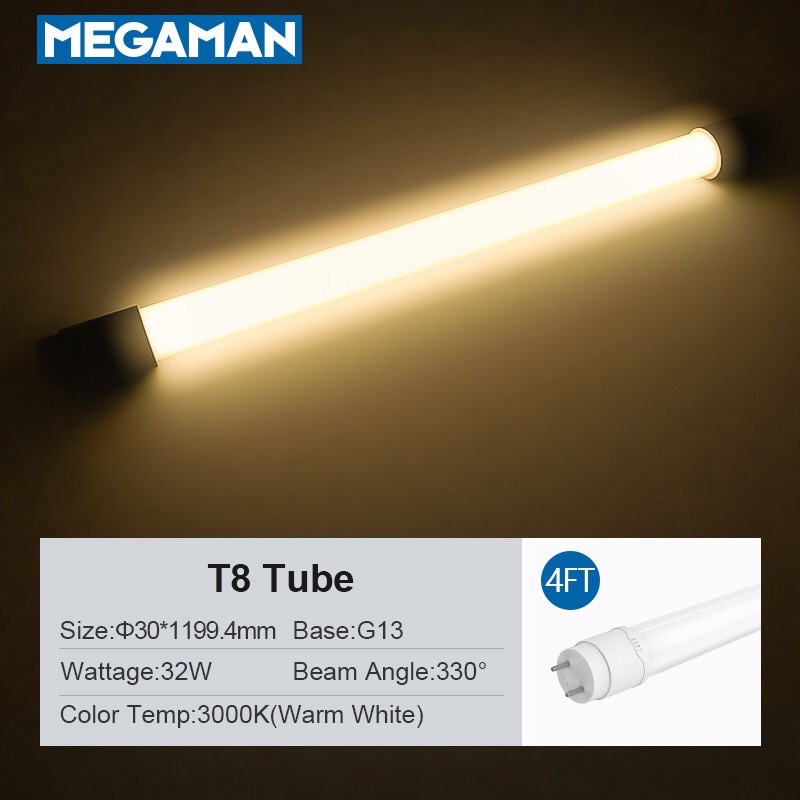 Megaman LED T8 Tube 4FT 20Pcs (32W/3000K/4000K/6500K)