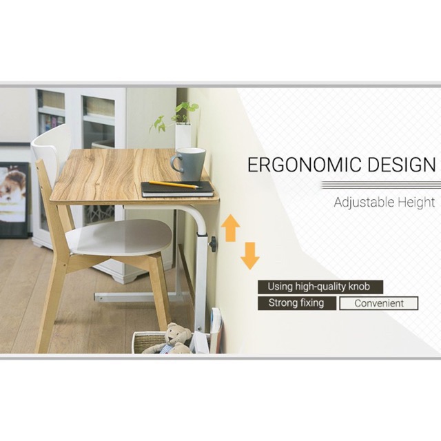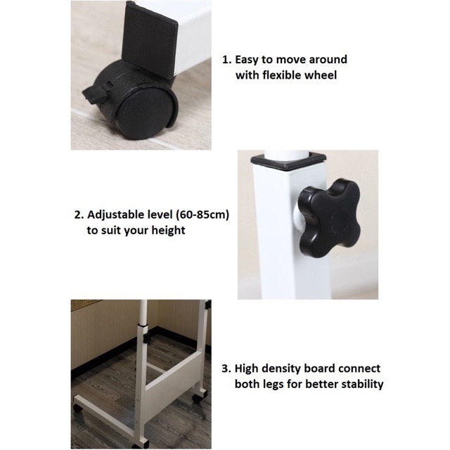 Meja Laptop Mudah Alih Beroda | Height Adjustable Table Lift Laptop Table Bedroom Table Portable Computer Desk w/ Wheels