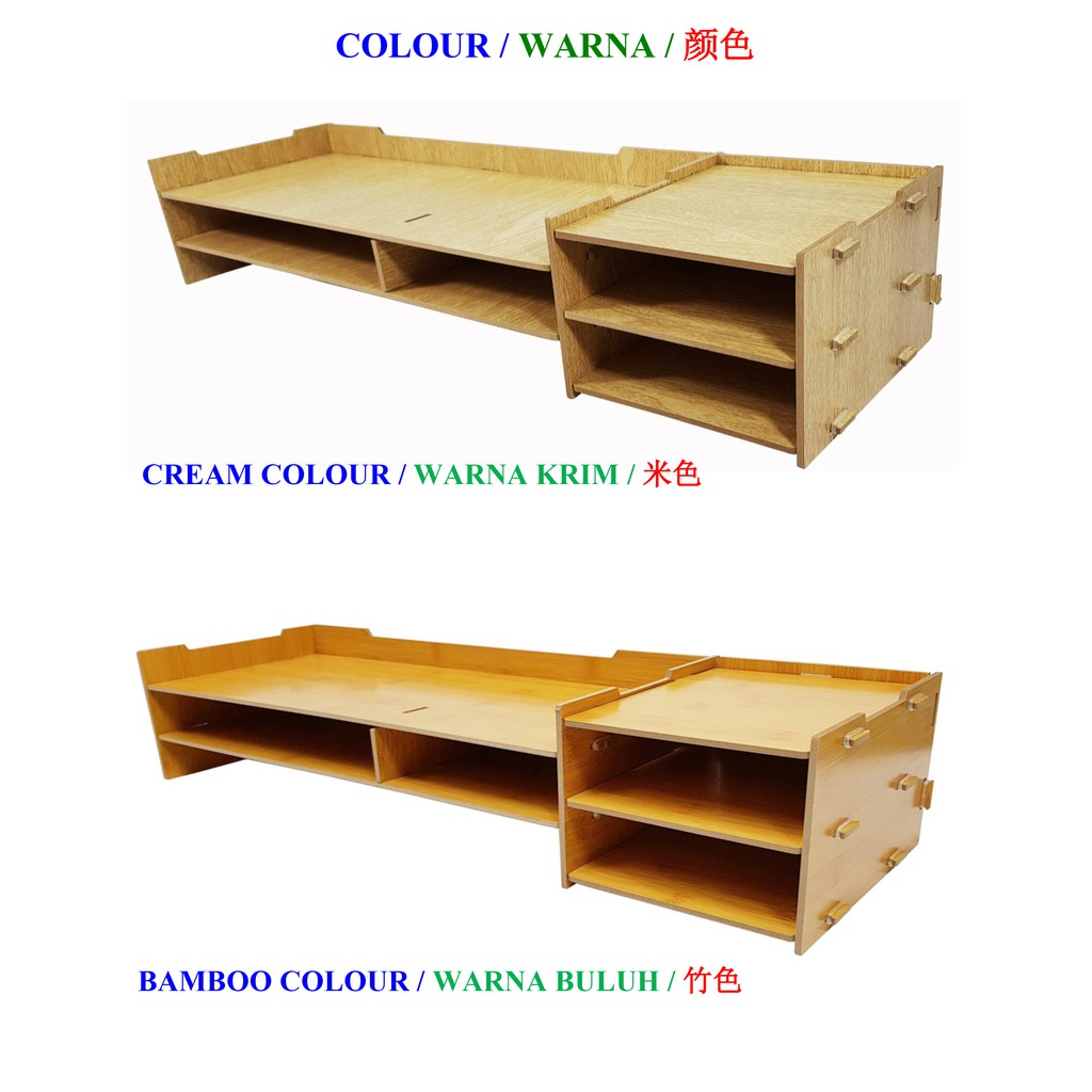 Meja Wooden Computer Monitor Extended Rack, Wooden Table Rack, Monitor Desktop Rack Rak LCD Rak Monitor Lapik Laptop