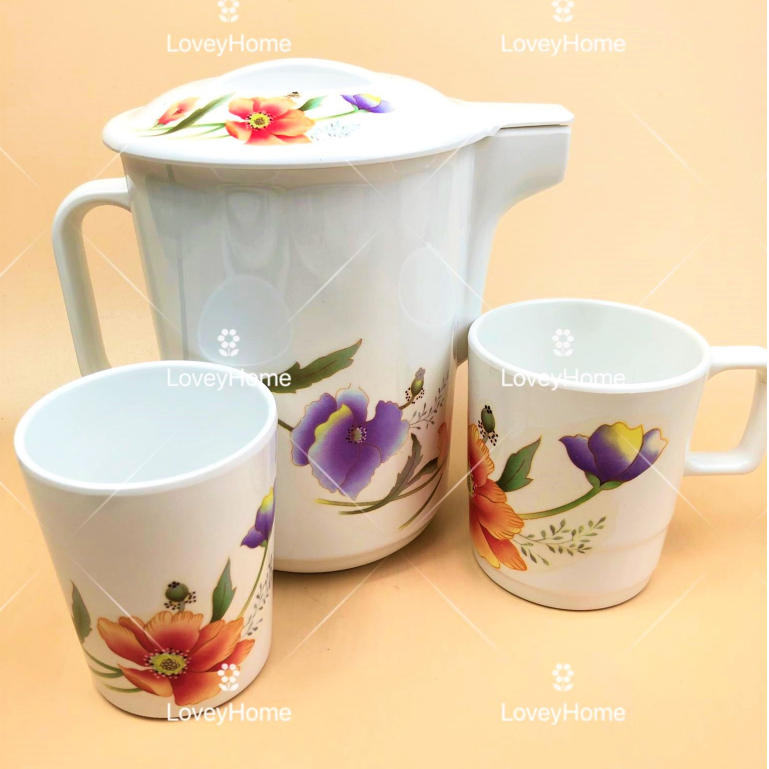 Melamine Hibiscus Dinner Set Plate Bowl Spoon Cup Jug Pinggan Mangkuk Sudu Bunga Bekas Makan Kuih Raya Hidangan Lauk Air