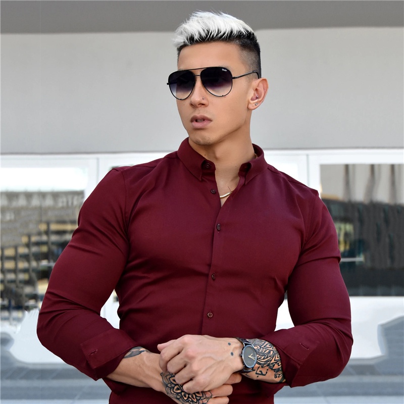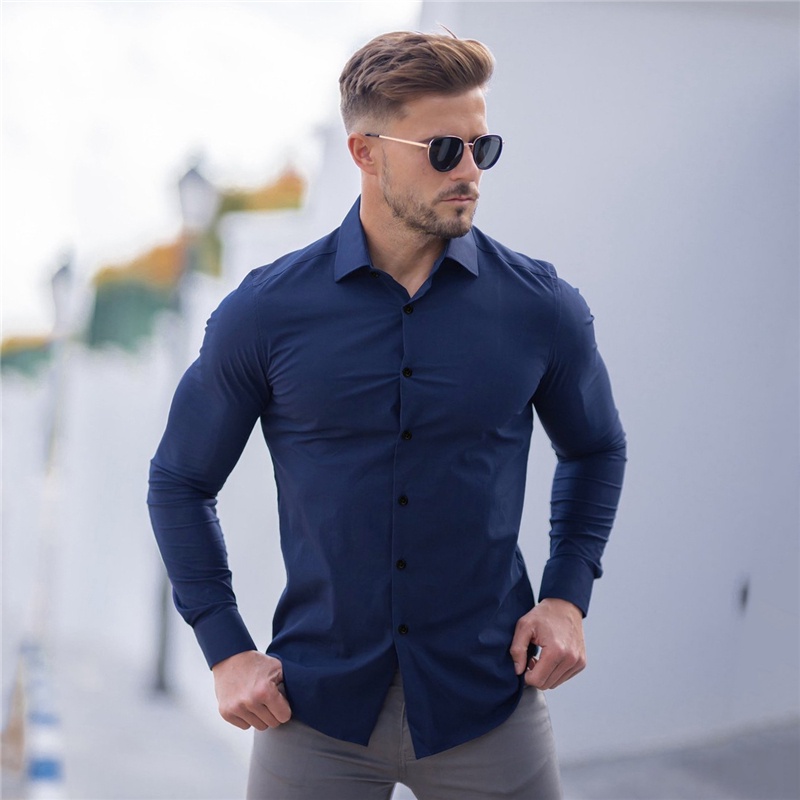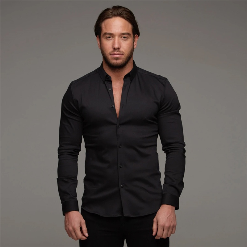 Men's Classic Long Sleeve Solid Slim Fit Basic Dress Shirts Autumn Turn-down Collar Formal Business Fashion Standard-fit Office Social Shirt