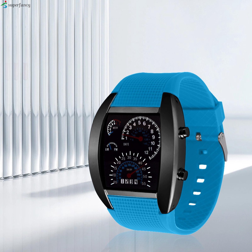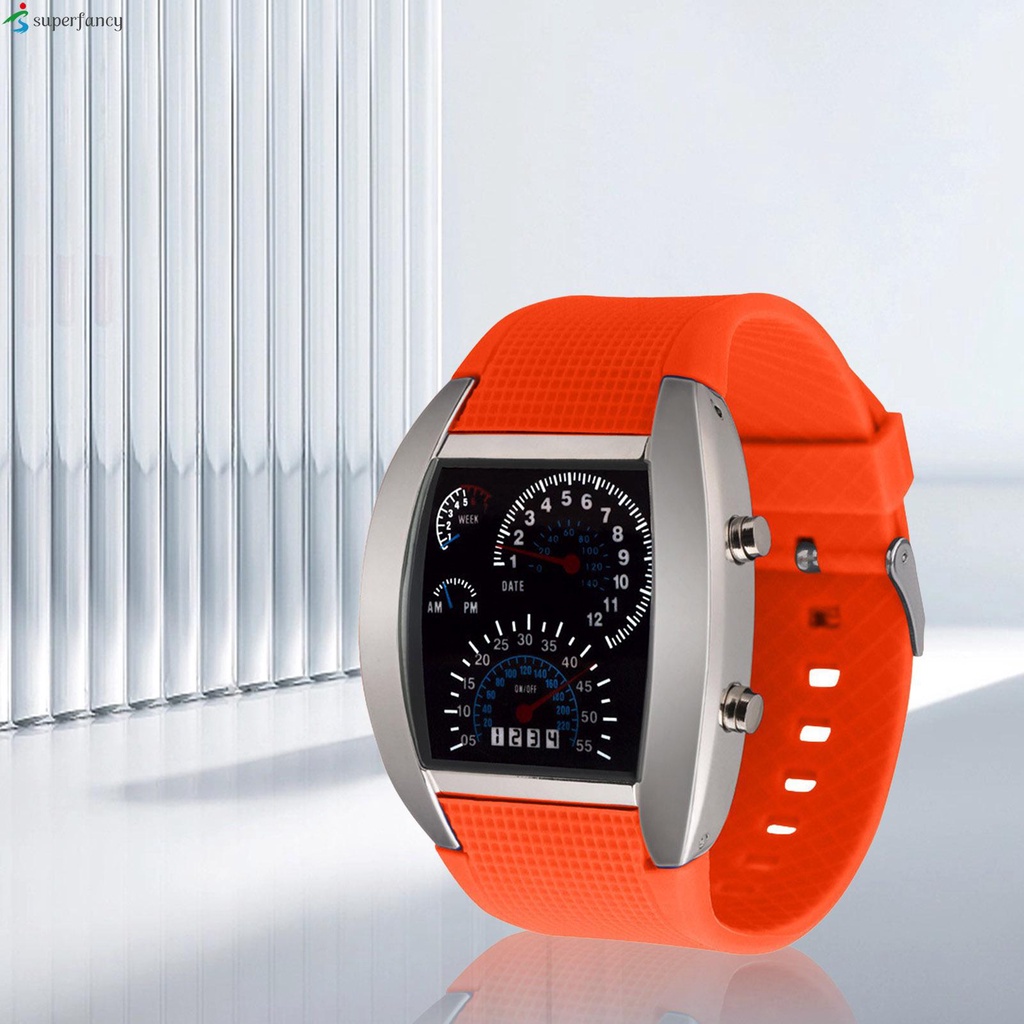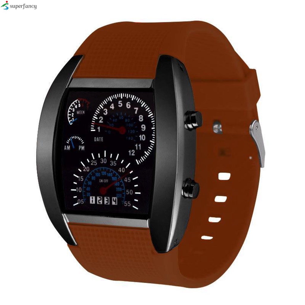 Men's Digital Wrist Watch Silicone Band Sports Car Dashboard Unique Dial Watch