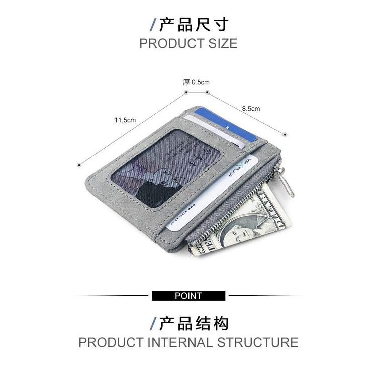 Men's Slim Short Card Wallet Matte Leather Retro Multi-card Frosted Fabric Card Holder Money Minimalist Transparent Coins Purse Dompet Lelaki Kulit Beg Duit Kecil Bag Zip Mini Donpet Laki Murah Original