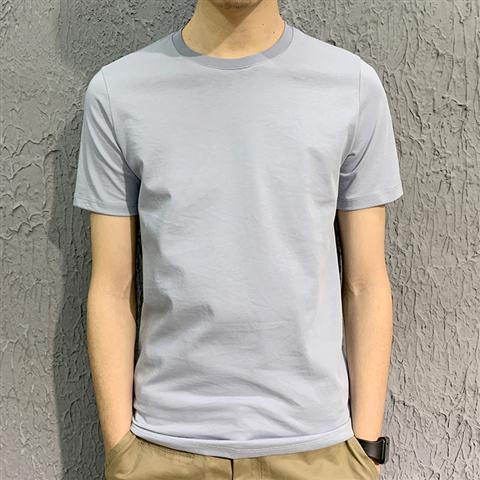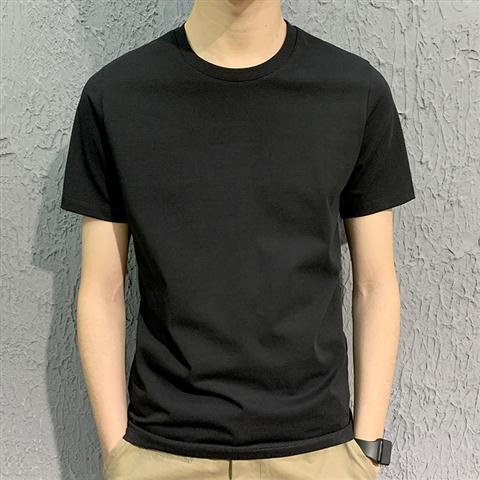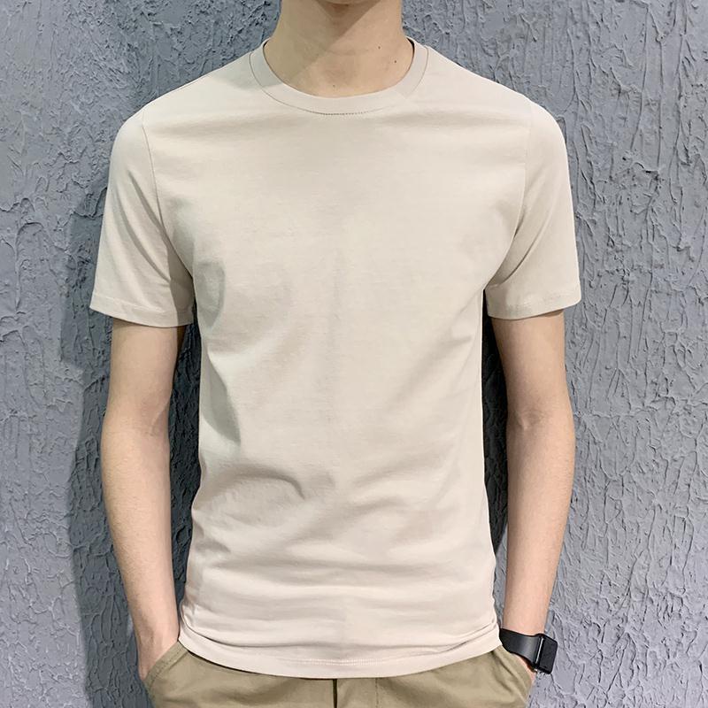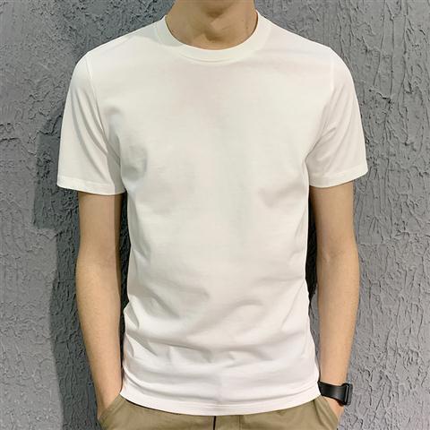 Men's T-Shirt~Summer Slim Pure White T-Shirt Round Neck Solid Color Clothes White Men S Half-Sleeve Elastic Bottoming Sh
