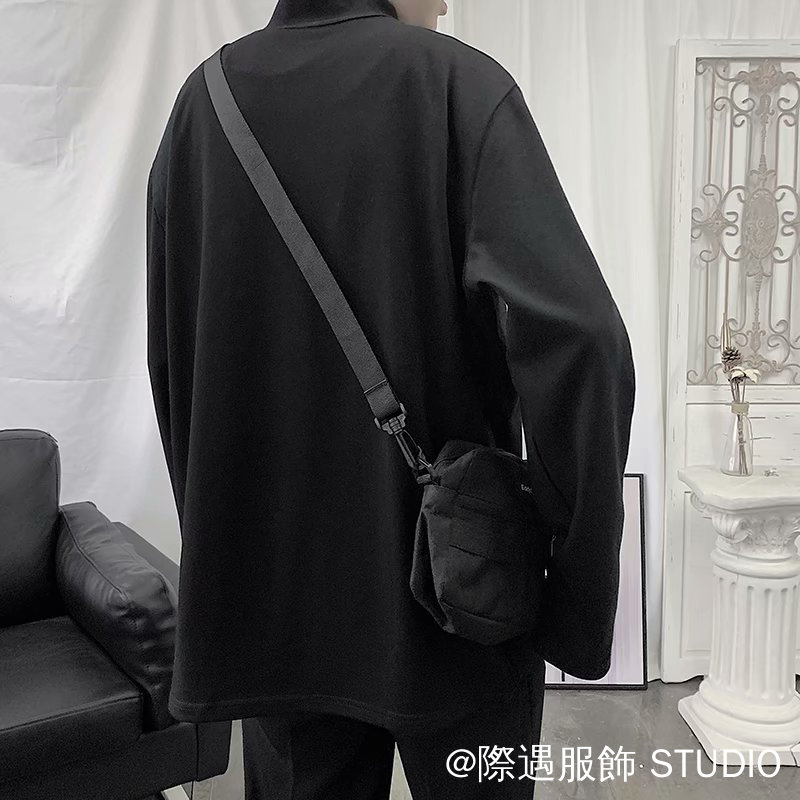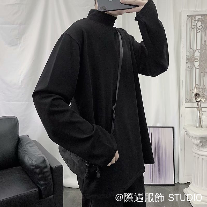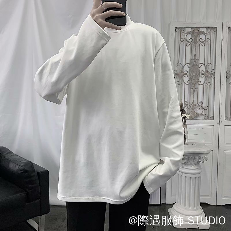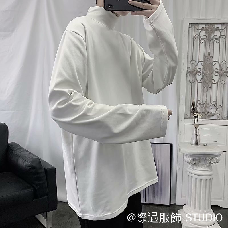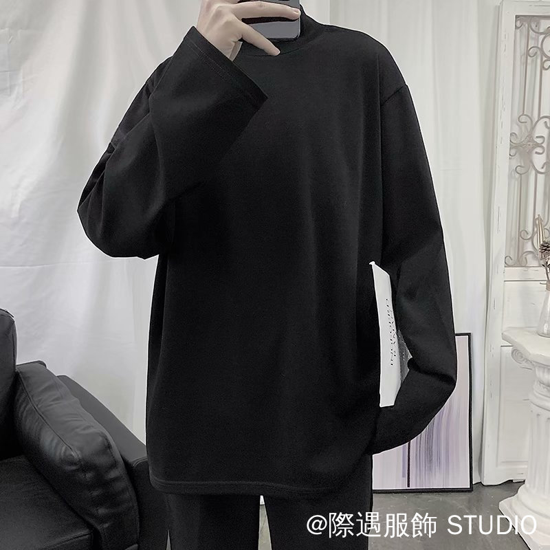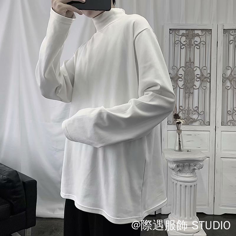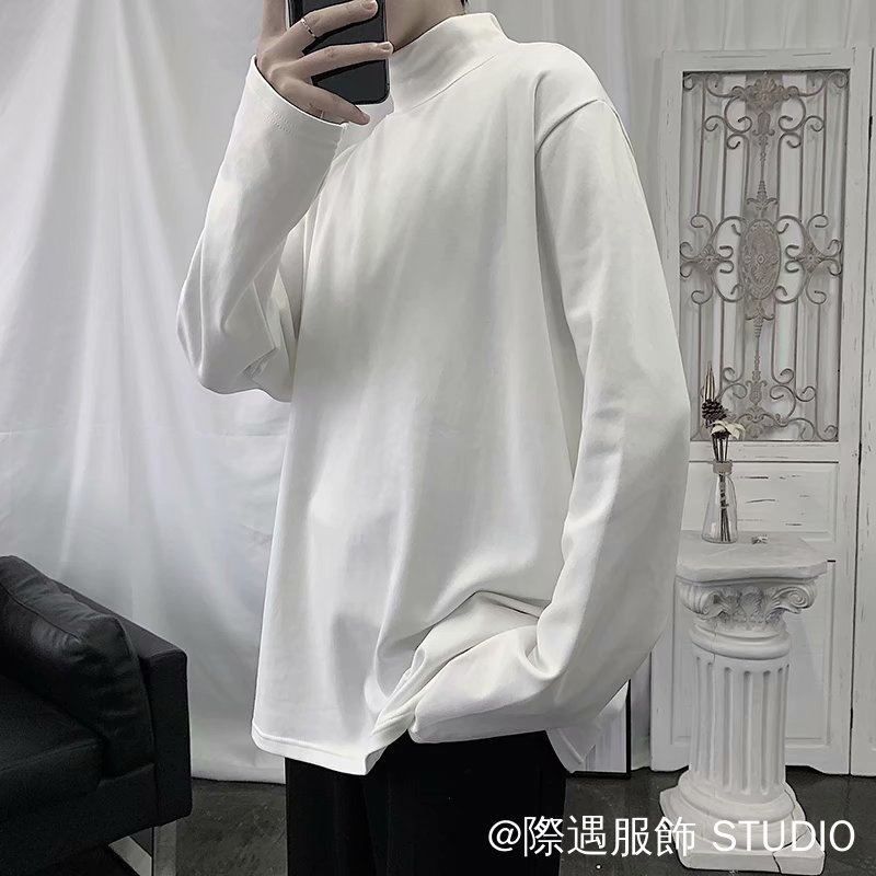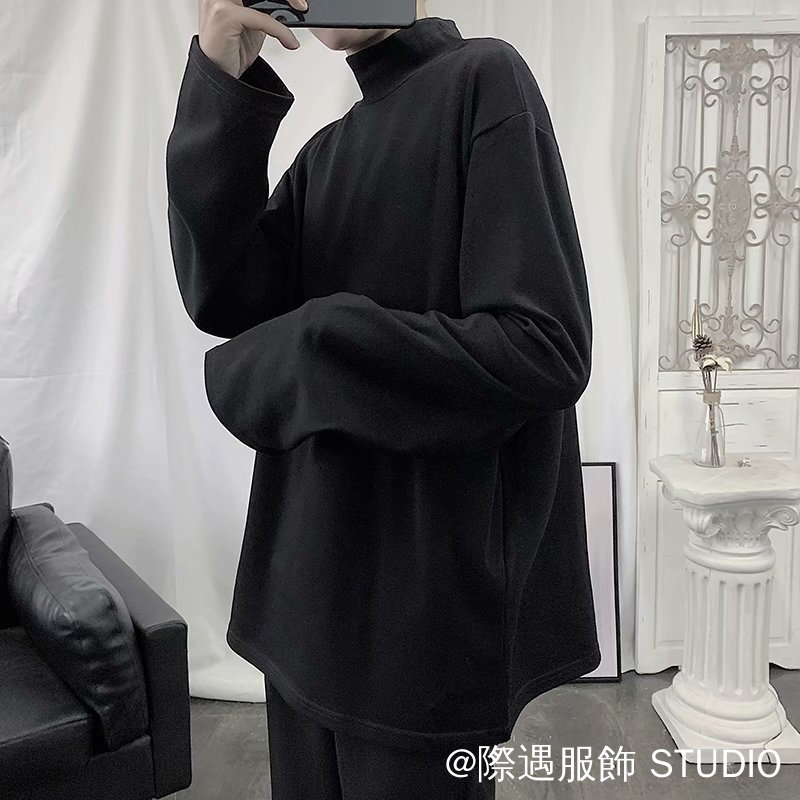 Long-Sleeved T-Shirt M-3XL Trendy Japanese Retro Time Half High Neck Bottoming Shirt Inner Plain T Solid Color Loose Outer Wear Long-Sleeved T @