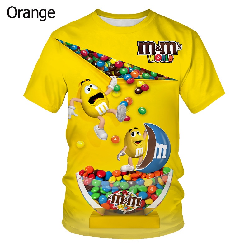 Men's and Women's T-shirts M&M'S Men's Shirts New Hot Selling Short Sleeve 3D Printing Time Casual Round Neck Short Sleeve Top