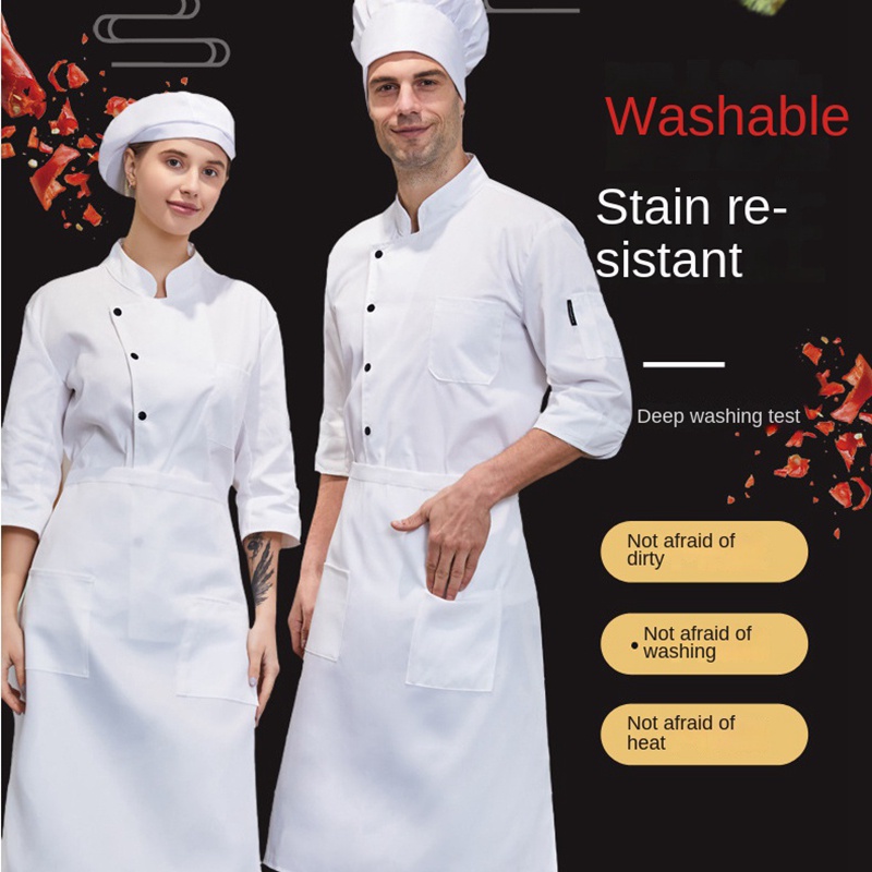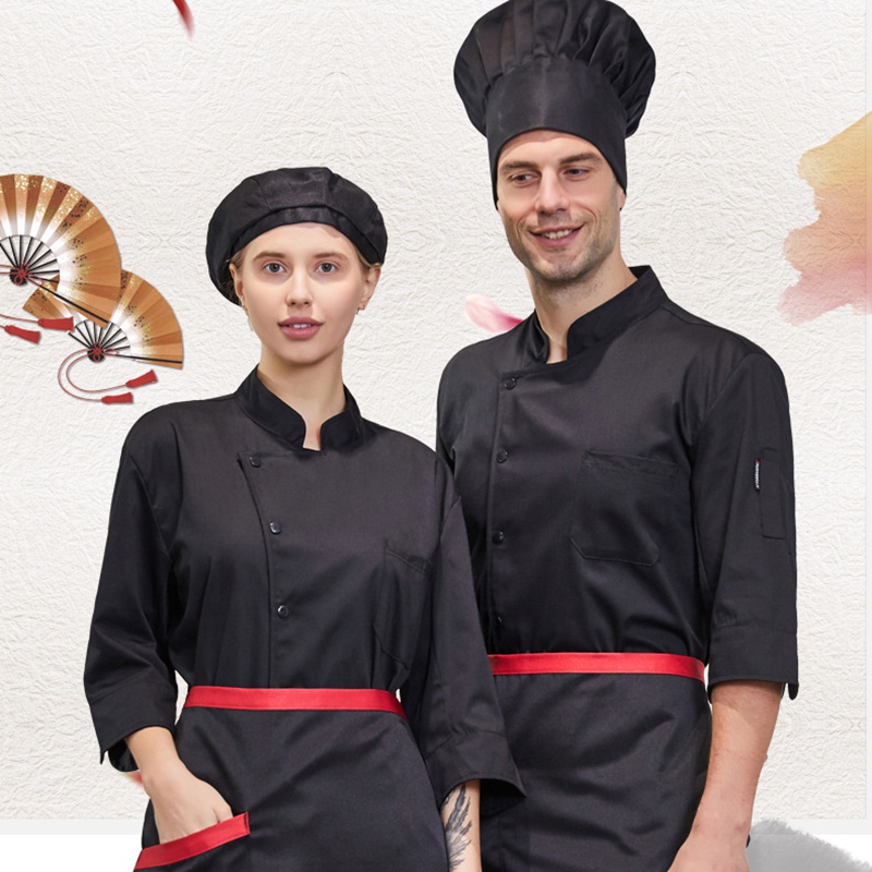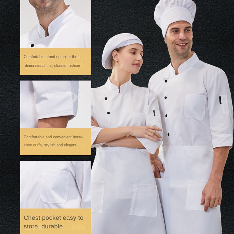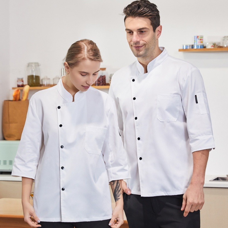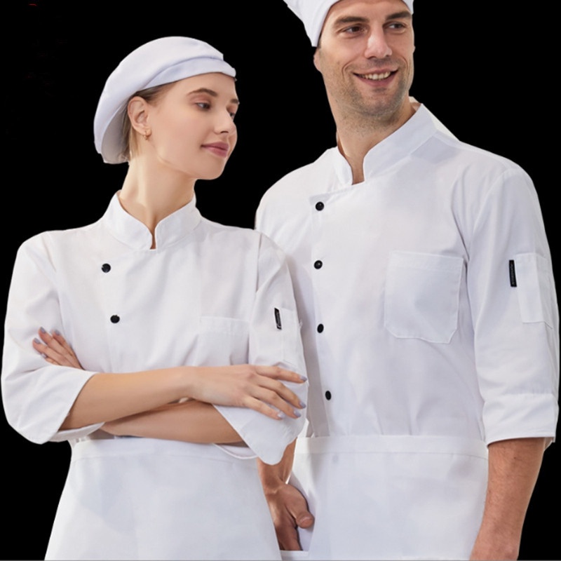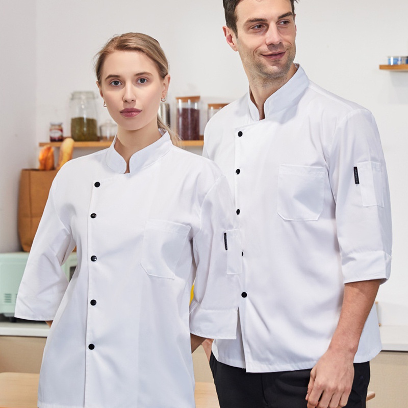 Men's and women's chef uniforms three-quarter sleeves pure cotton monochrome bakery cake pastry chef dessert shop bakery bakery work clothes hotel kitchen chef uniform