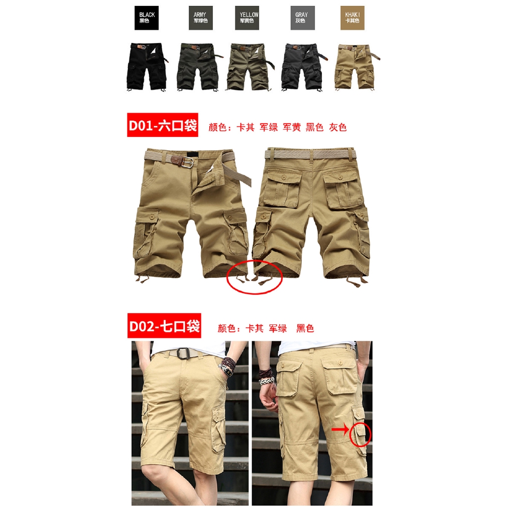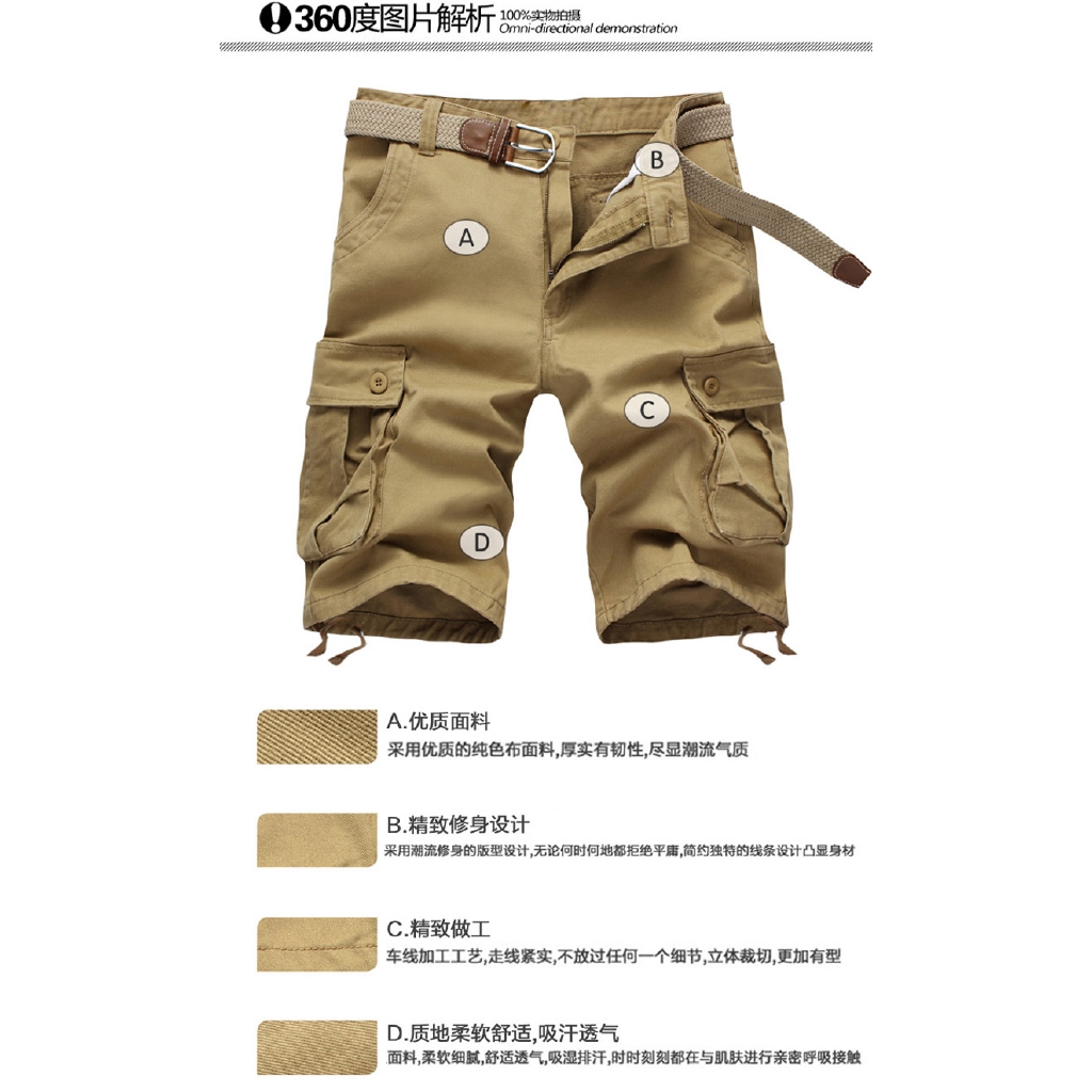 Men Cargo Short Pants Sport Casual Fifth Pants Multi-Pocket Army Short Trousers