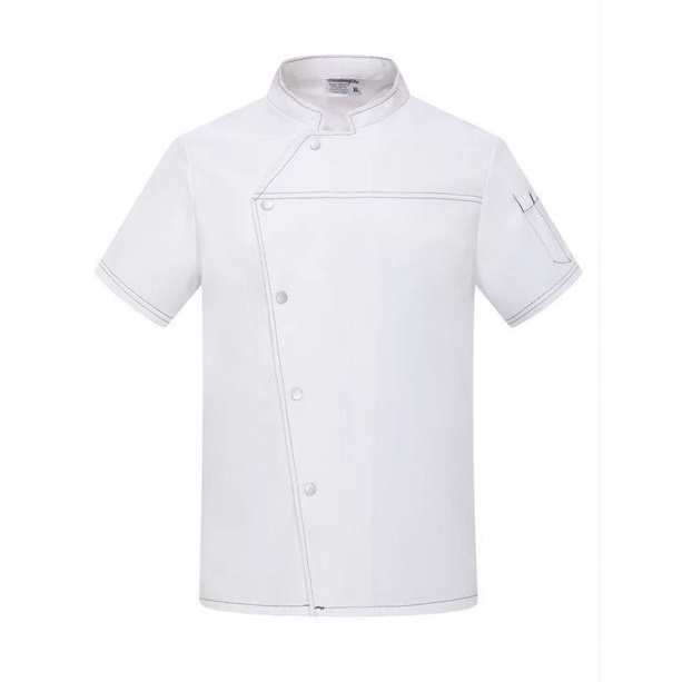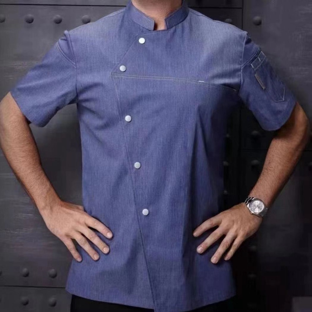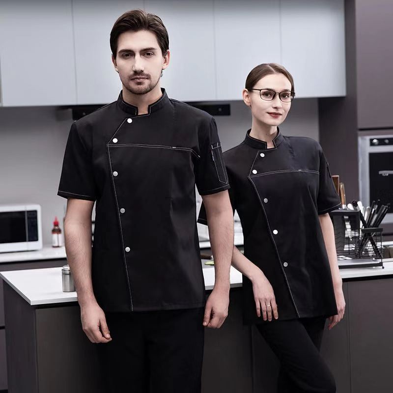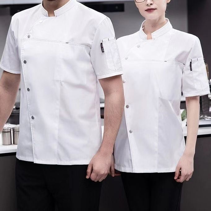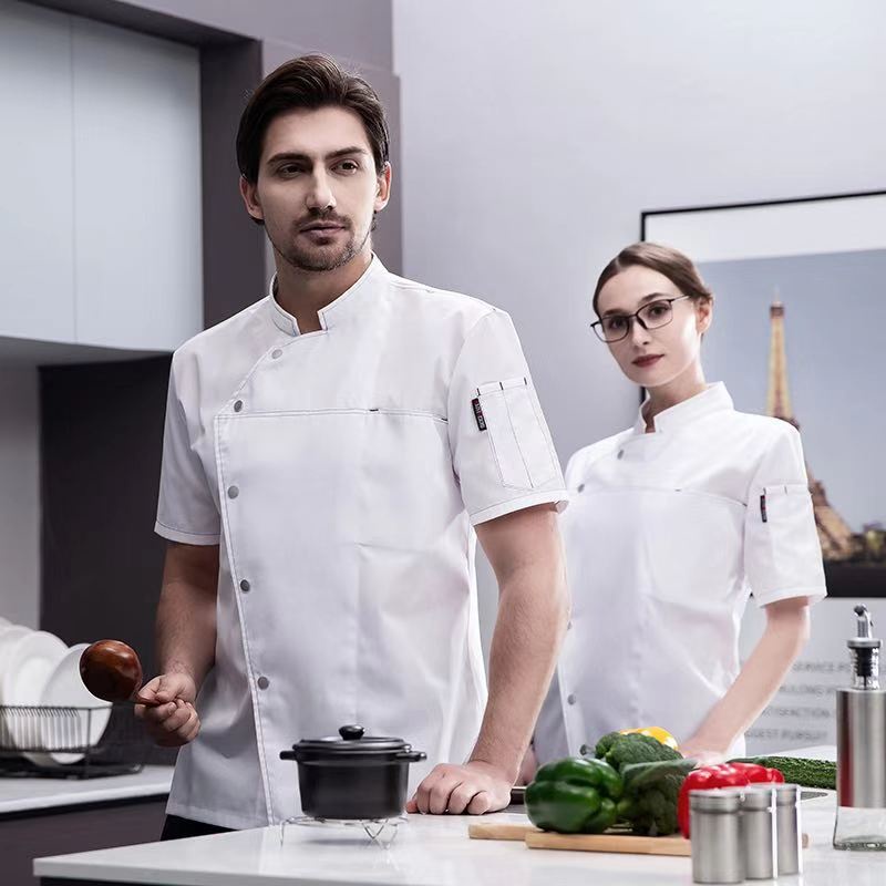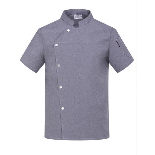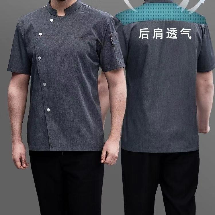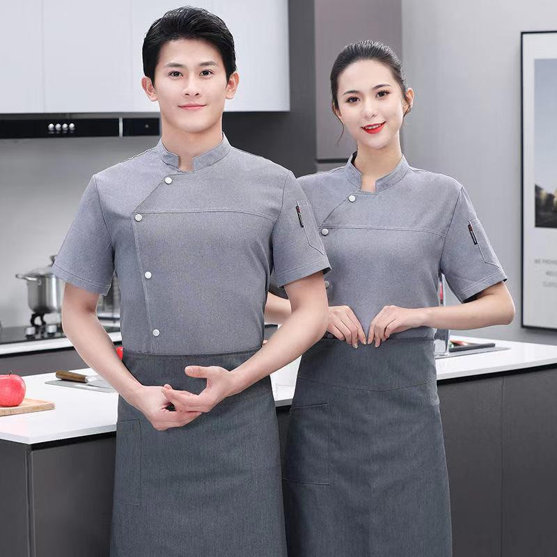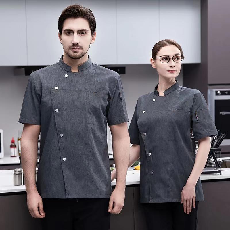 Men Grey Chef Uniform Women Short Sleeve Chef Jacket for Summer Restaurant Hotel Kitchen Cooking Clothes