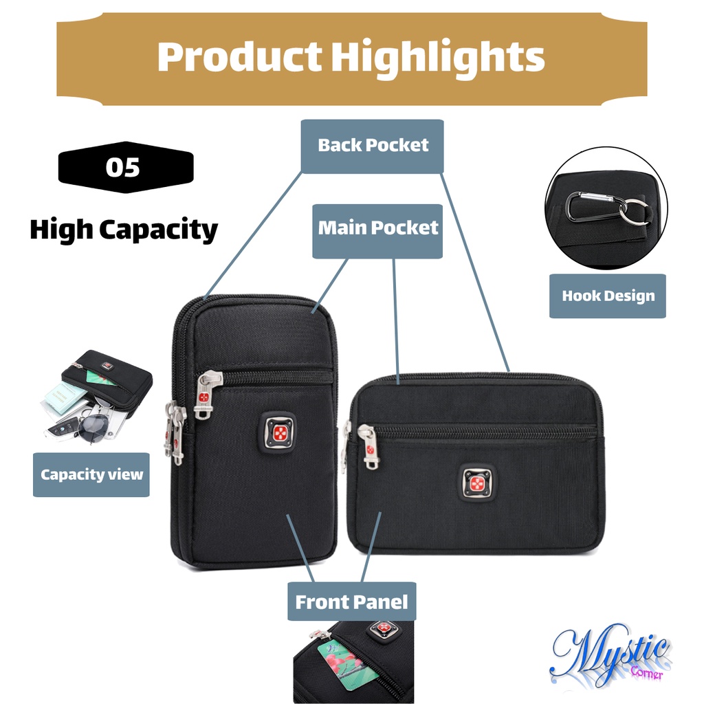 Men Outdoor Multi-layer Multifunction Oxford Cloth Material Waist Pouch Bag- 7 inch Phone Beg Tali Pinggang Lelaki 022