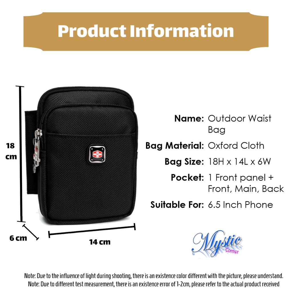 Men Outdoor Multi-layer Oxford Cloth Material Waist Bag with Pen side hole- 6.5 inch Phone Beg Tali Pinggang Lelaki 021