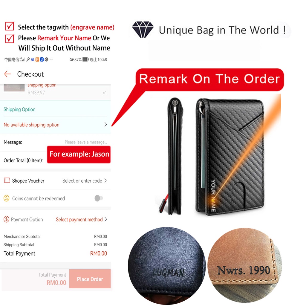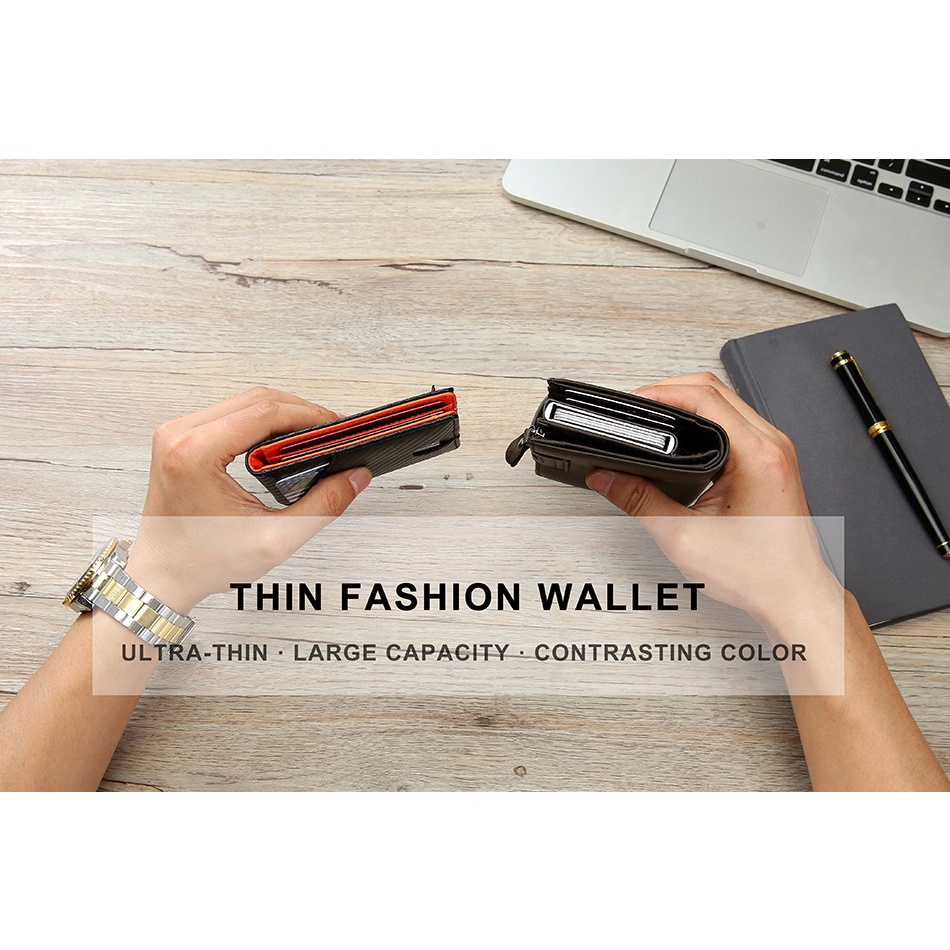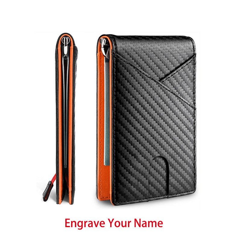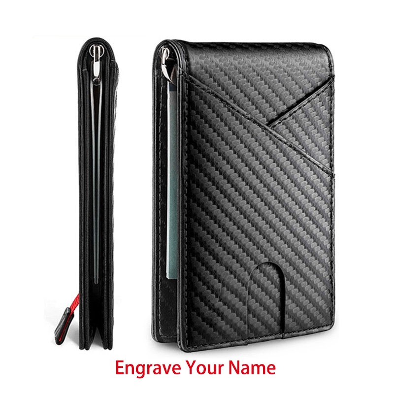 Men Slim Wallet Money Clip Carbon Fiber PU leather Wallet Thin Bifold Business ID Window Case Customize Name
