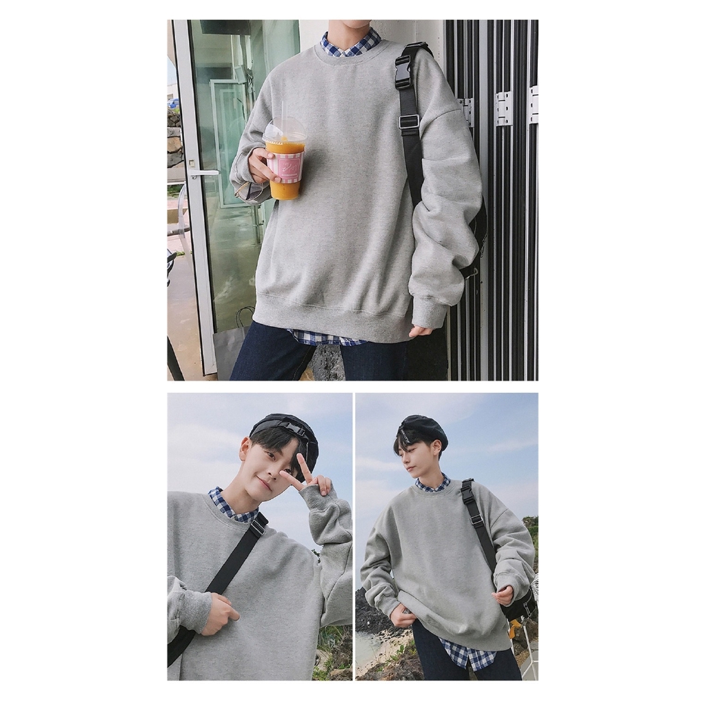 男士宽松纯色卫衣 Men Women Cotton Plain Sweatshirt Men Kangaroo Pocket Plain-Colour Sweaters
