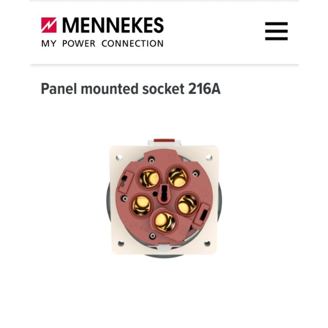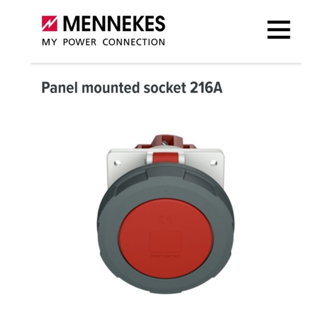 Mennekes Panel Mounted Socket Model 216A, 125A5P 415V IP67.
