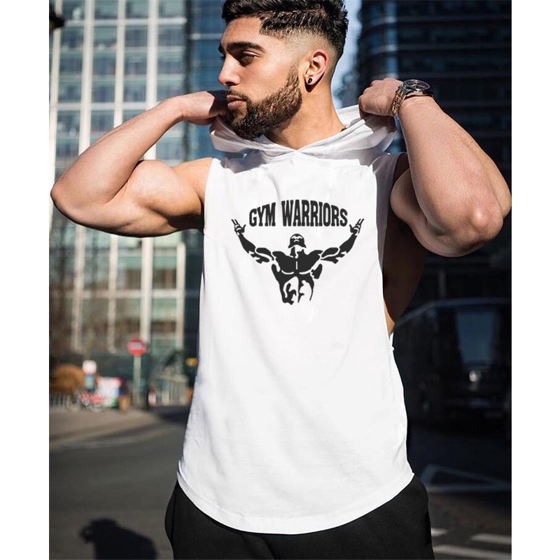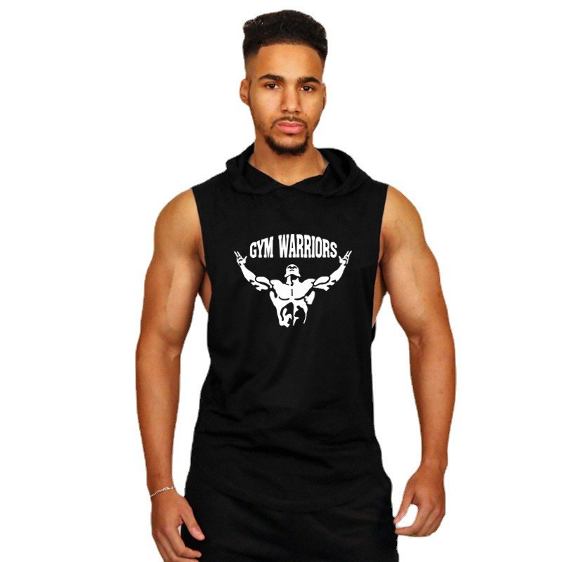 Mens Brand Fitness Training Workout Sportswear Singlets Gym Casual Clothing Bodybuilding Hooded Tank Top Cotton Sleeveless Vest