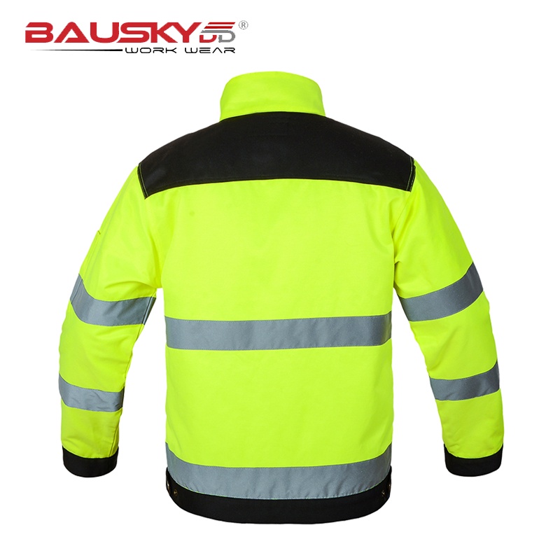 Mens High Visibility Reflective Outdoor Work Jacket Hi-Vis Lime Green Fluorescent Yellow Safety Jacket for Construction Cycling Motorcycling