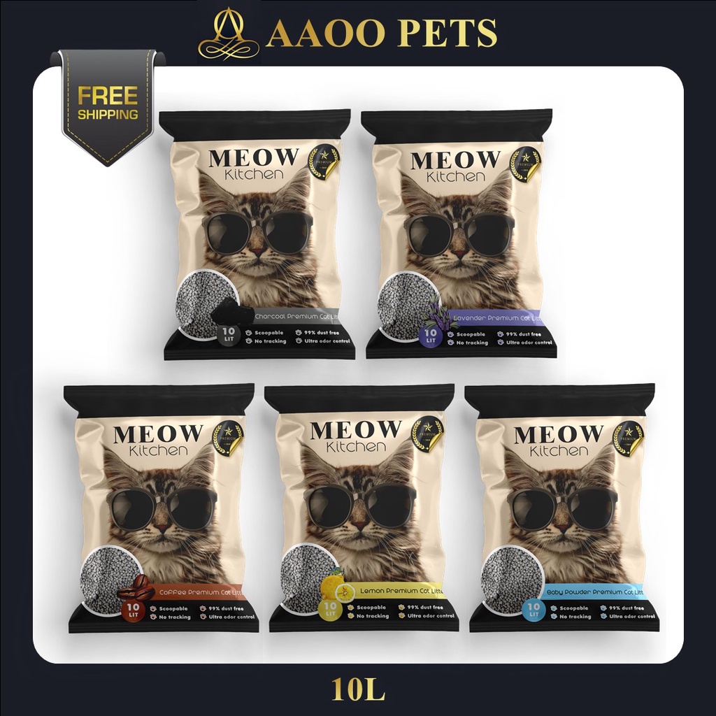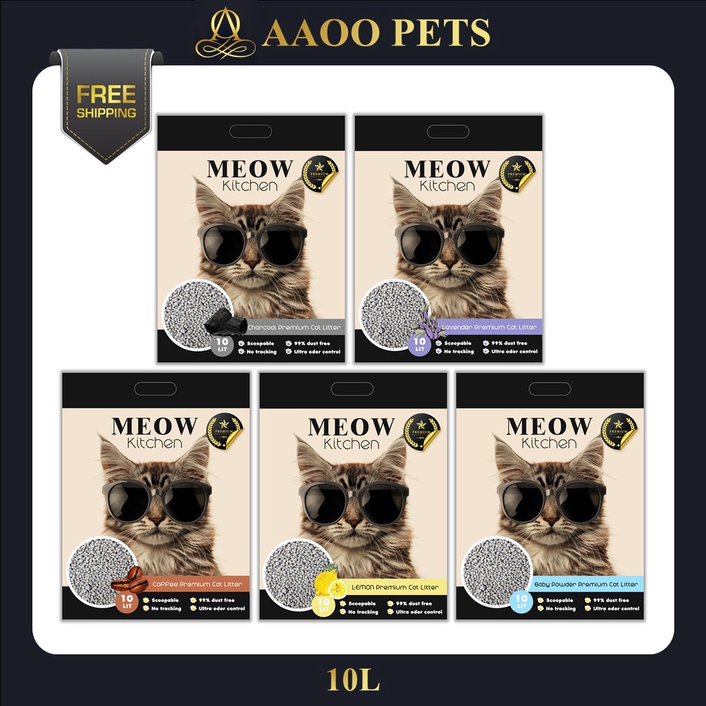 Meow Kitchen Bentonite Premium Cat Litter 10L ( Coffee / Lemon )- Pasir Murah / Pasir Kucing / Clumping