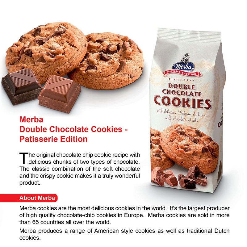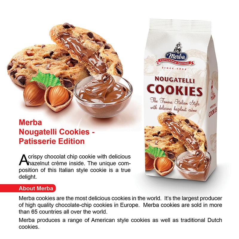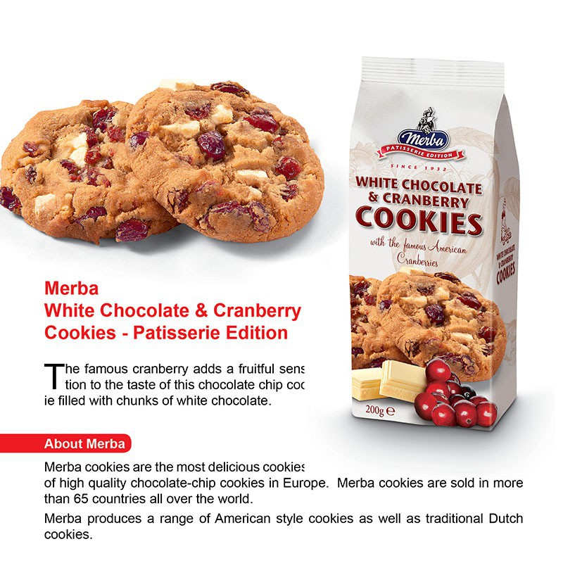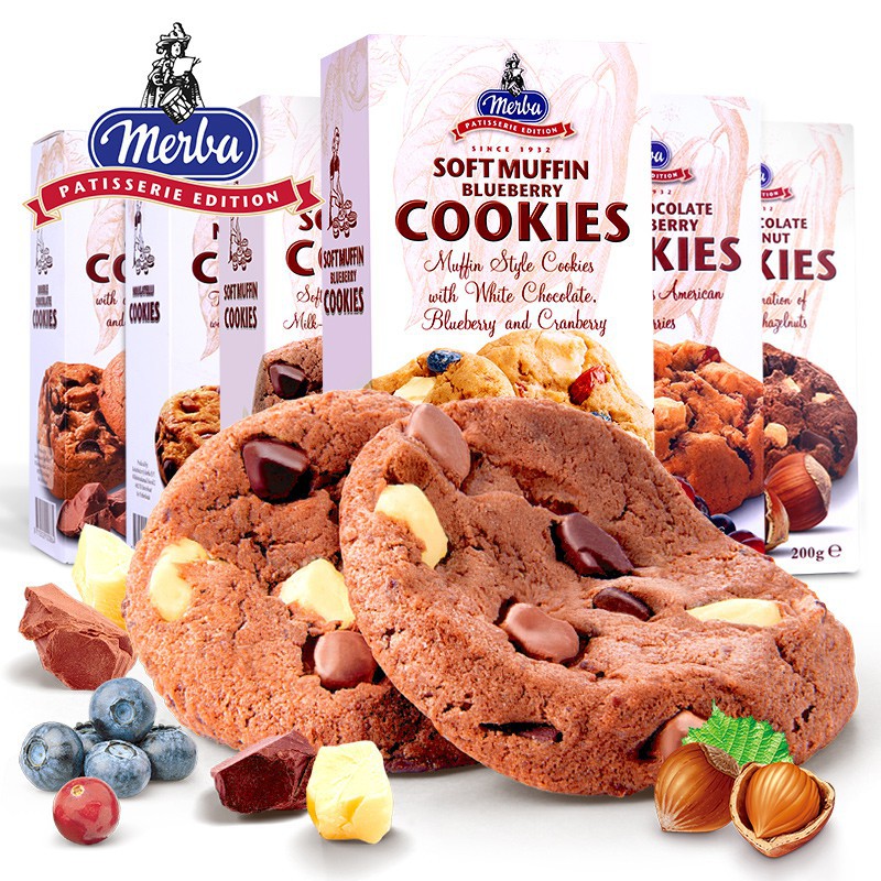 Merba Patisserie Premium Cookies Dark Chocolate & Hazelnut/Double Chocolate/Nougatelli/White Chocolate & Cranberry 200g
