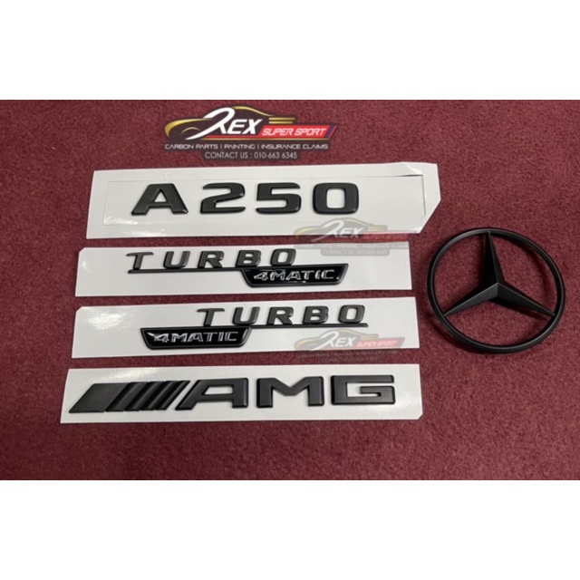 Mercedes Benz A-Class W176 A180 A200 A250 A45 AMG Emblem Logo Badge Set Black Matte Black Belakang