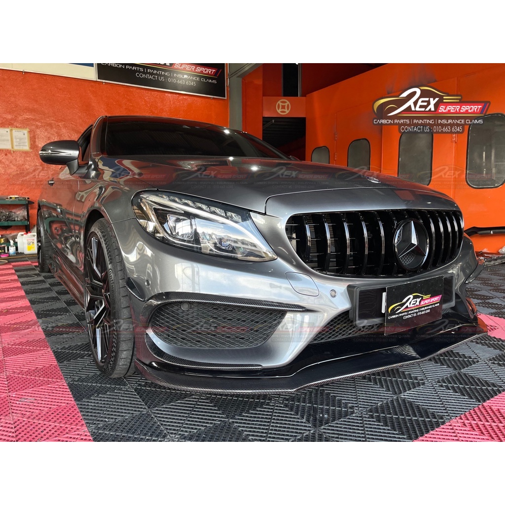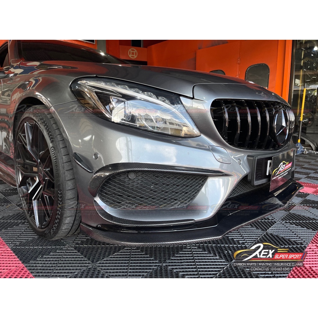 Mercedes Benz C-CLASS W205 C250 AMG Sedan / Coupe Front Bumper Canard Set Real Carbon Fiber