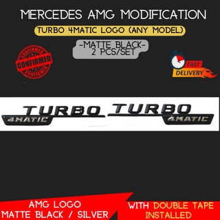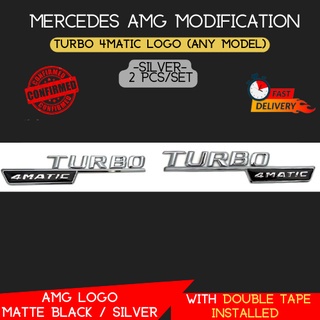 Mercedes Logo Emblem A45 CLA45 Gla45 C43 C63 C63S E43 E53 E63S AMG 4Matic Turbo 4matic logo emblem Matte Black / Silver