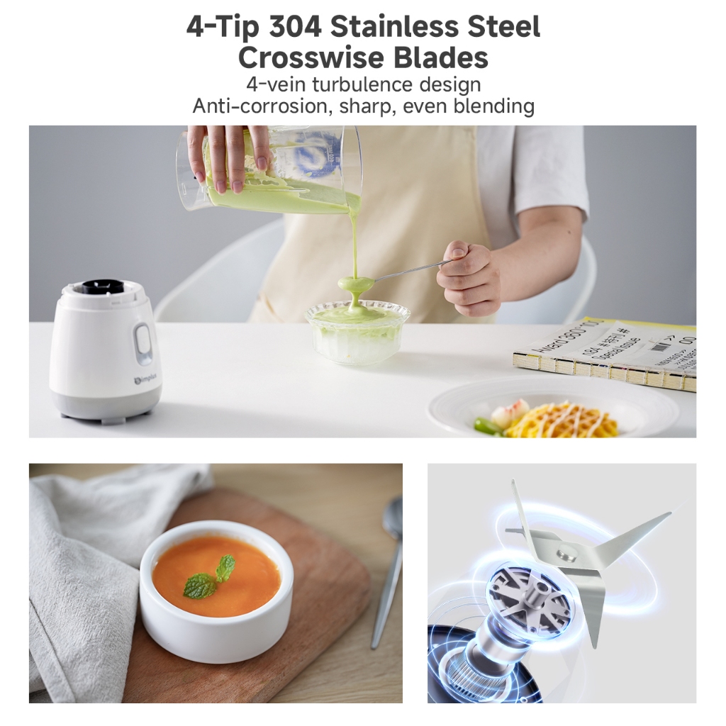 Simplus Multi-functional Blender | 600mL Capacity | 4 304 Stainless Steel Blades | Baby Food | Replacable Blades LLJH004