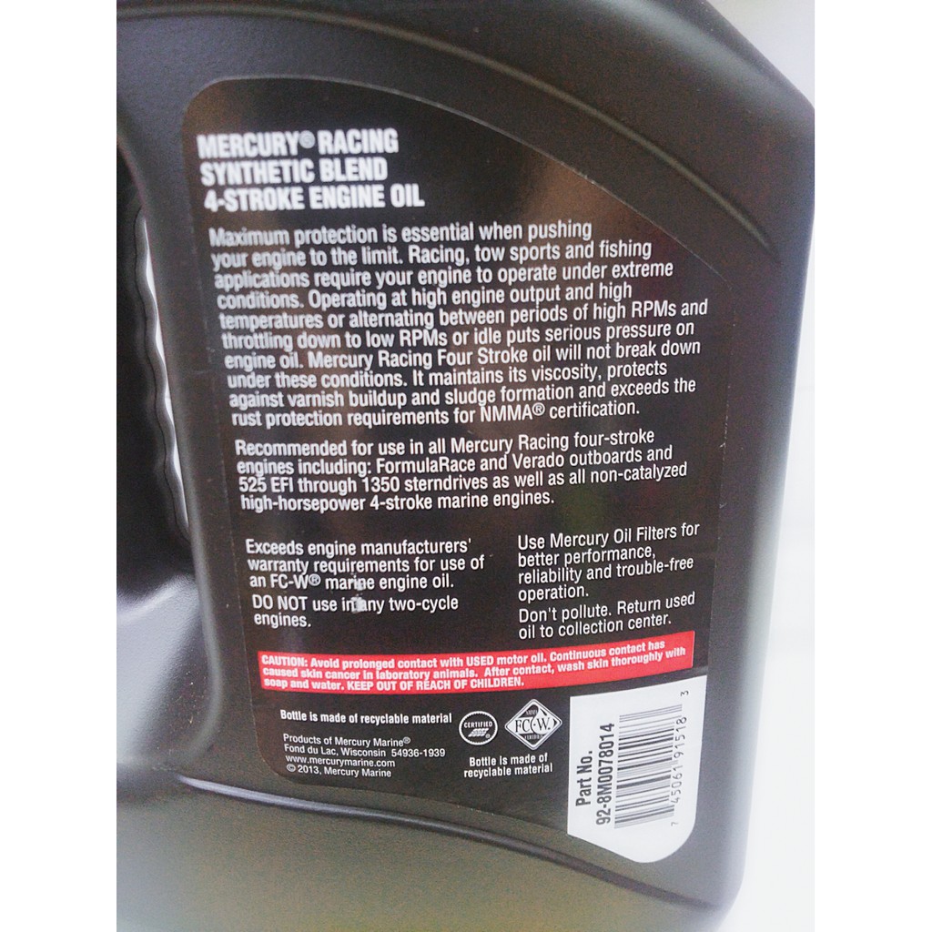 Mercury Racing 4 Stroke Marine Engine Oil Synthetic 25W50 FC-W Outboard Boat