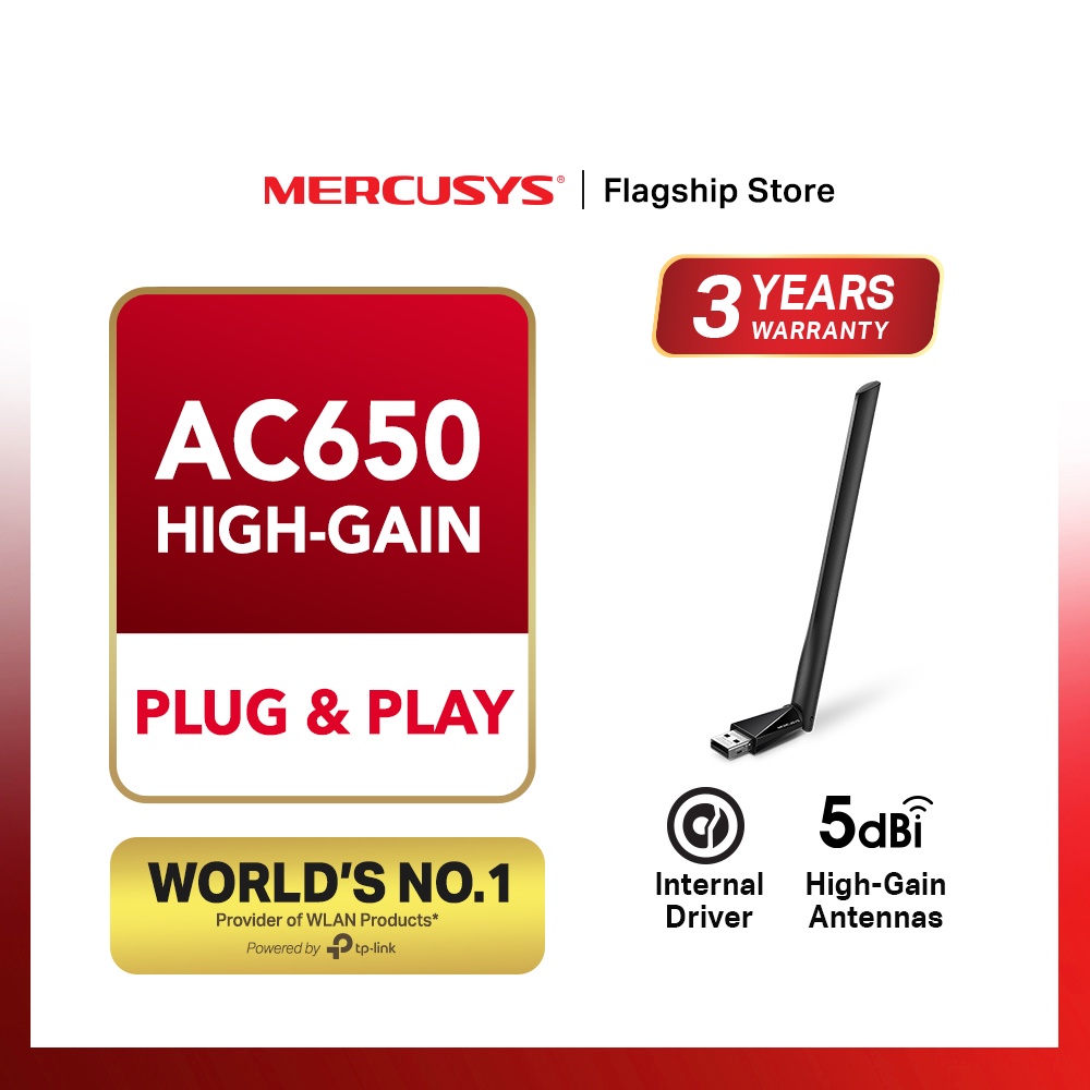 Mercusys AC650( 2.4GHz + 5GHz ) High Gain Dual Band Wireless WiFi USB Adapter MU6H (Powered by TP-Link)