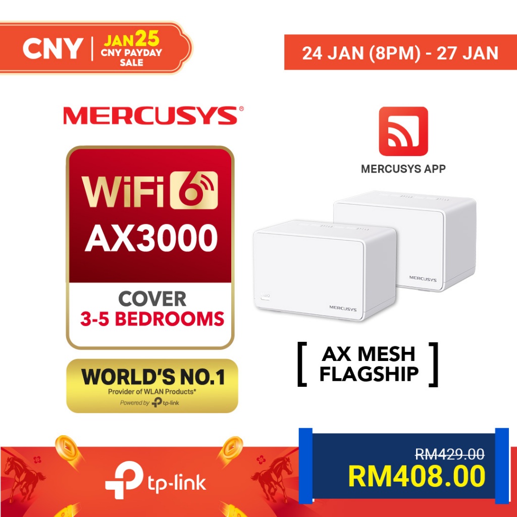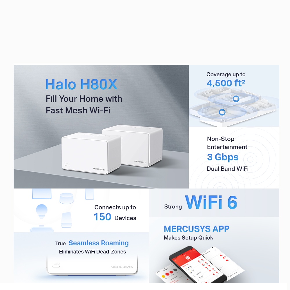Mercusys AX3000 Whole Home Mesh WiFi 6 Router System Halo H80X (2-Pack) (Powered by TP-Link)