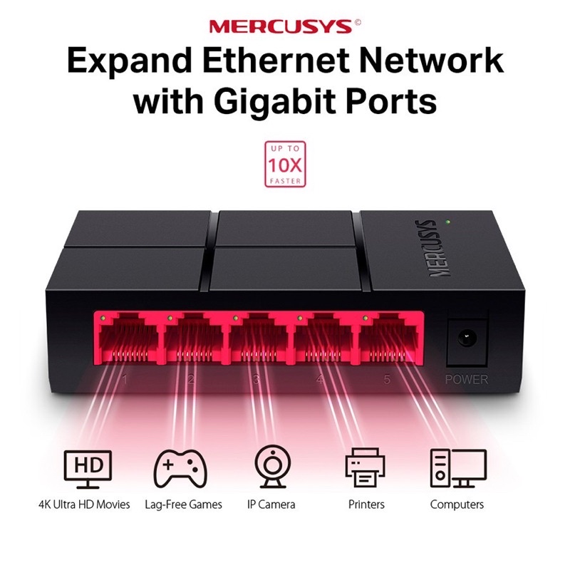 Mercusys MS105G Desktop Switch 5 Port 10/100/1000 Mbps HUB Switch - Black