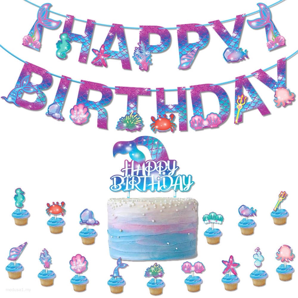Mermaid Theme Birthday Party Decoration Happy Birthday Banner Cake Topper Mermaid Tail Party Supplies