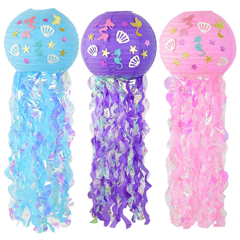 Mermaid Theme Party Decoration DIY Hanging Jellyfish Lantern Little Mermaid Under The Sea Birthday Party Decorations Baby Shower