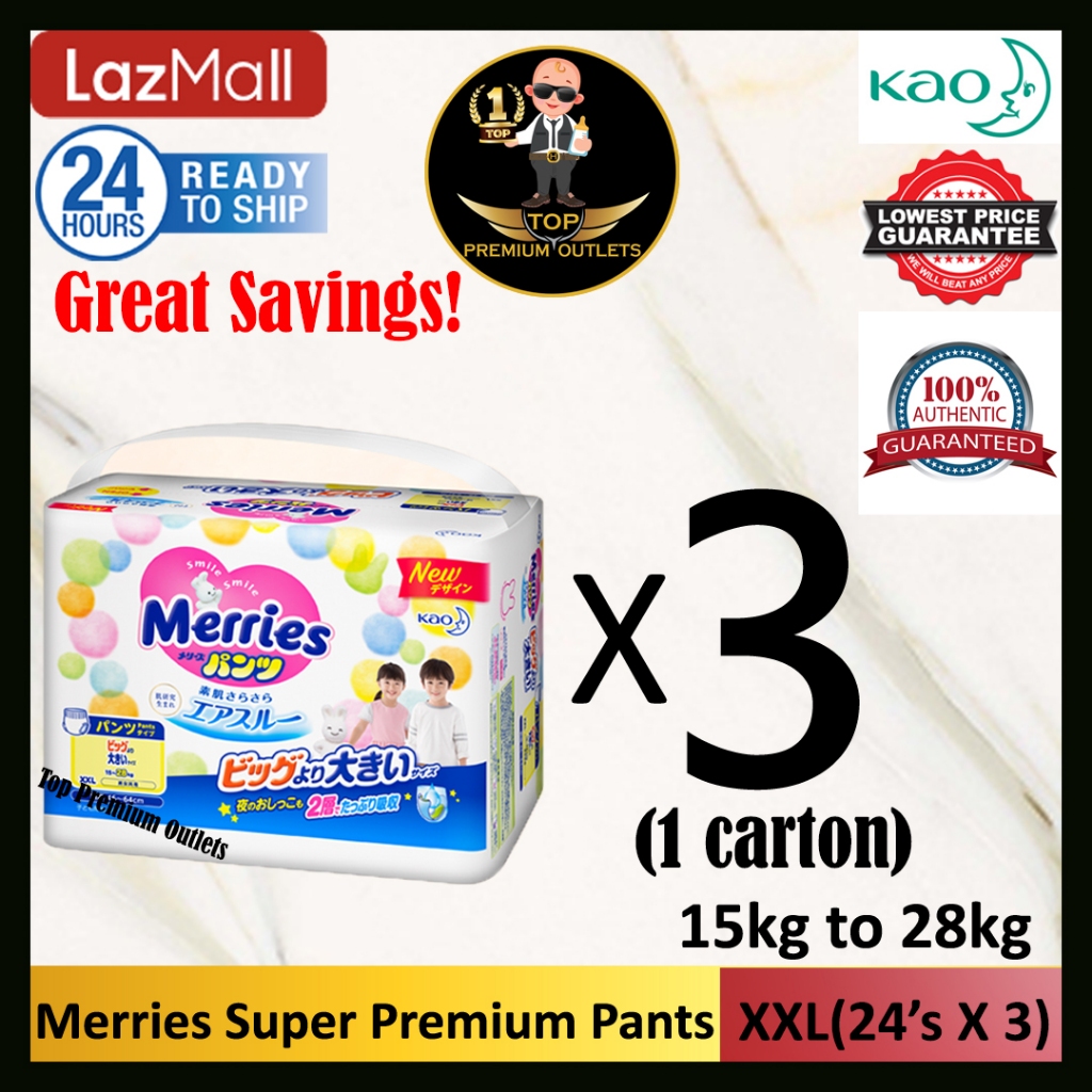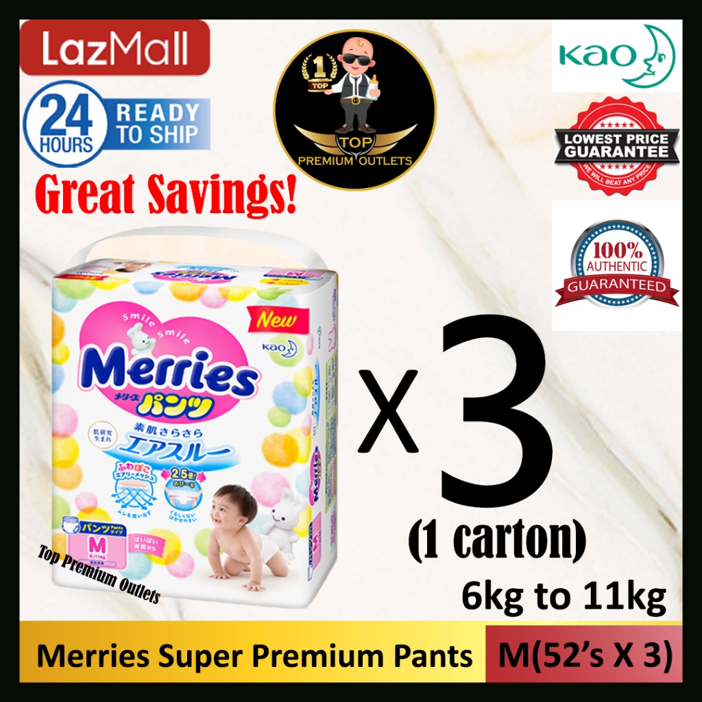 Merries Super Premium PANTS (M52/L44/XL38/XXL24) X 3 Packets (MADE IN JAPAN) (New Stock) Misakii