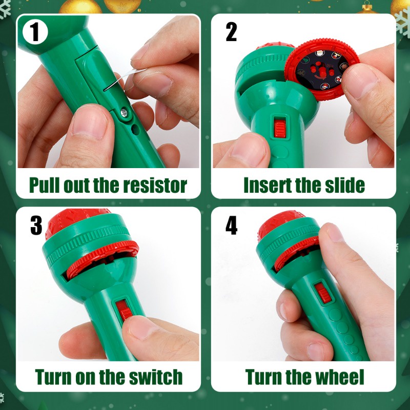Merry Christmas Decoration / Christmas Slide Projection Flashlight / Cartoon Santa Claus Pattern Projector Torch / Kids Early Education Interactive Toy / Baby Puzzle Xmas Present
