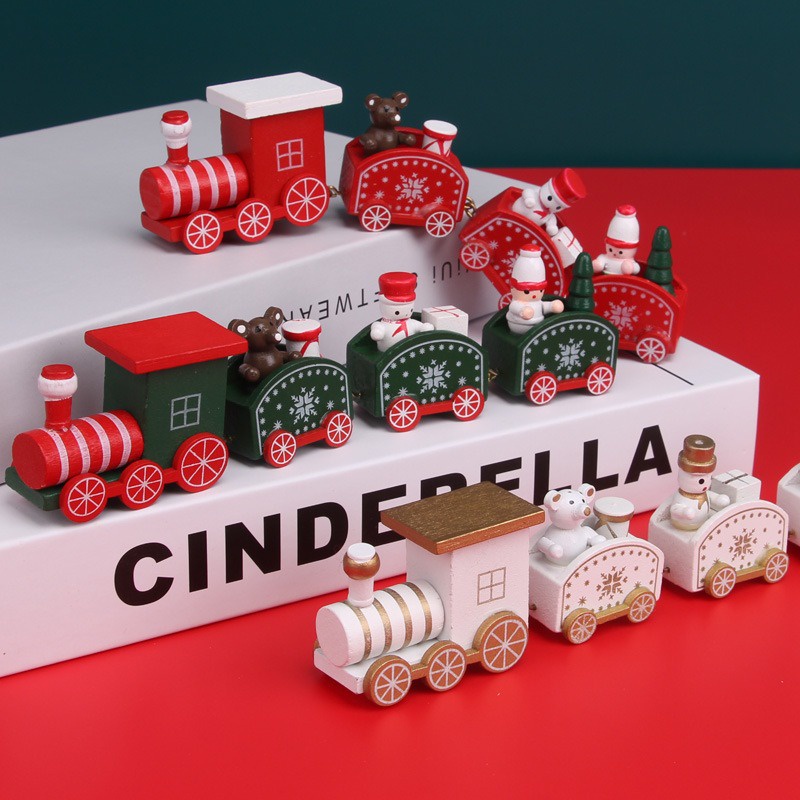 Merry Christmas Decoration / Christmas Wood Train Ornament / Five-section Train Figurine Decor / Xmas Table Fireplace Window Dress Up Props / Christmas New Year Party Supplies