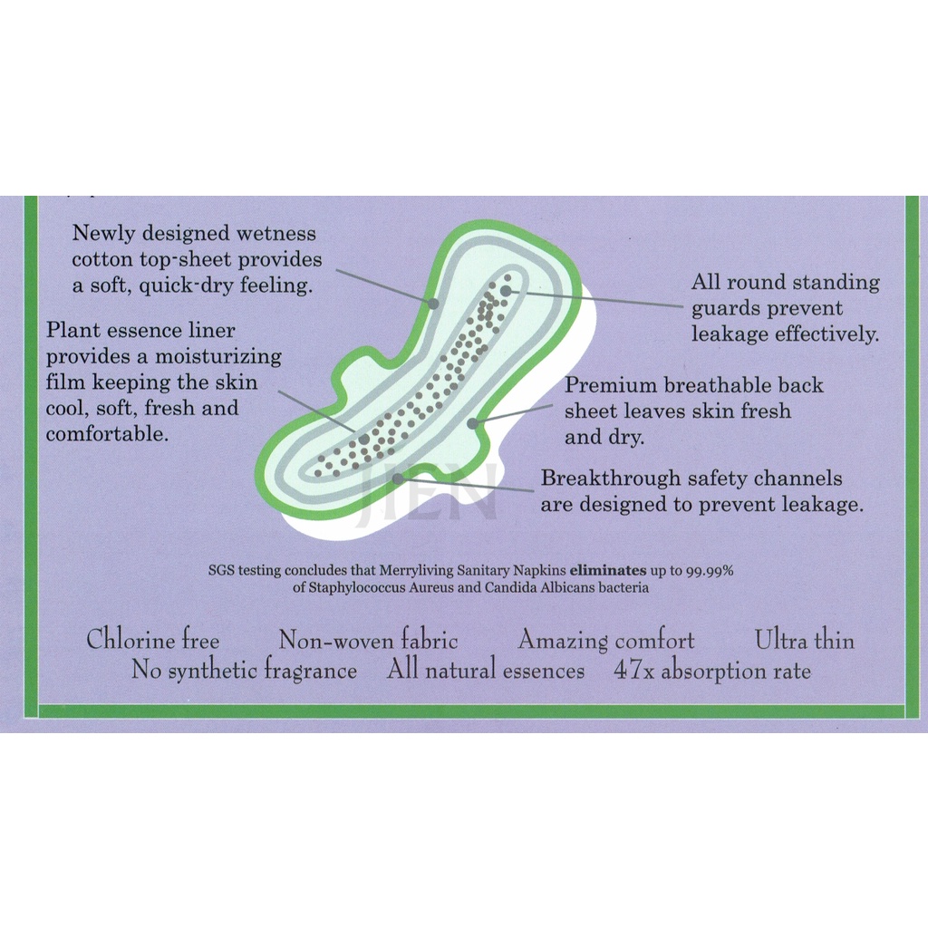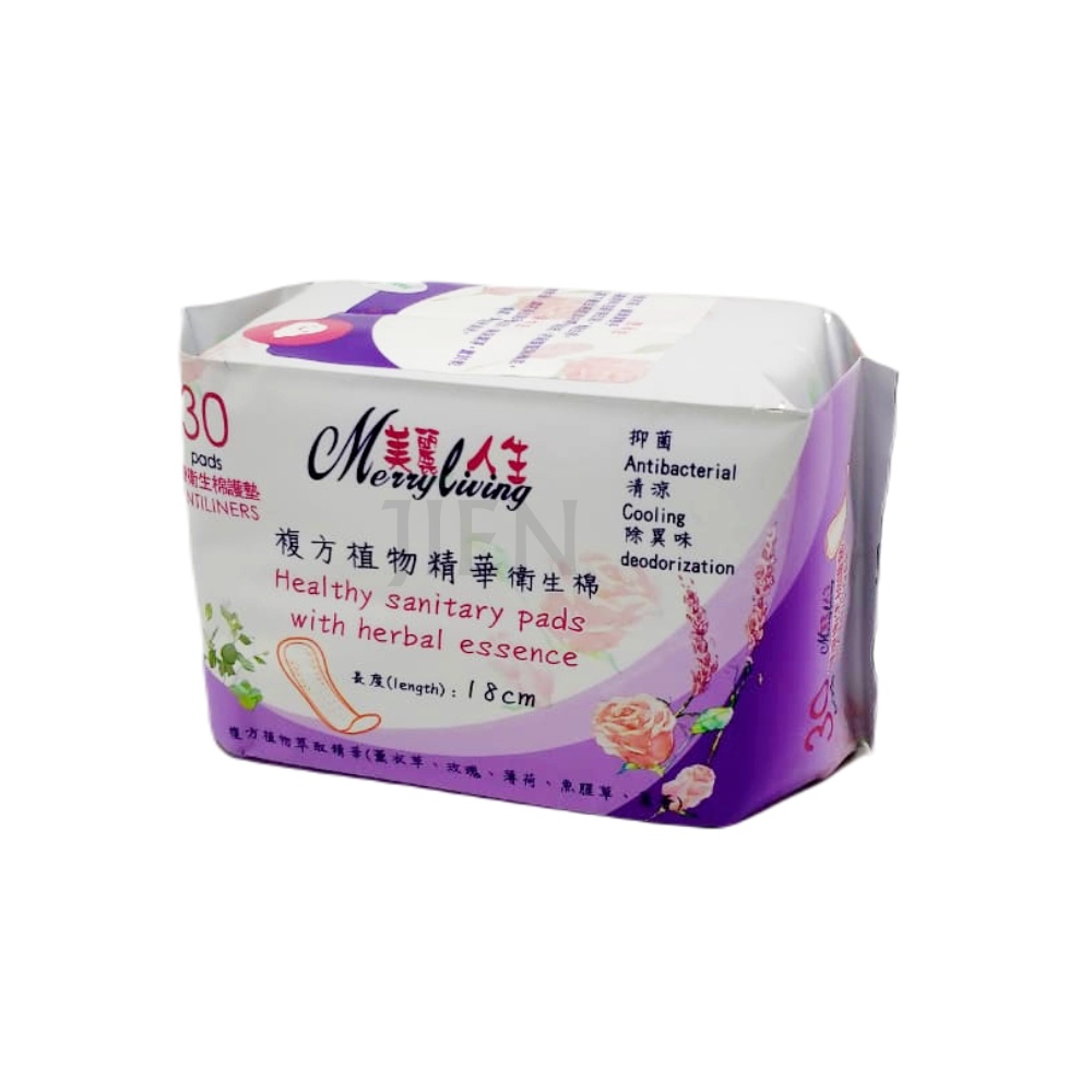 Merryliving Sanitary Pad with Herbal Essence, Sanitary Napkin, Tuala Wanita Dengan Pati Herba