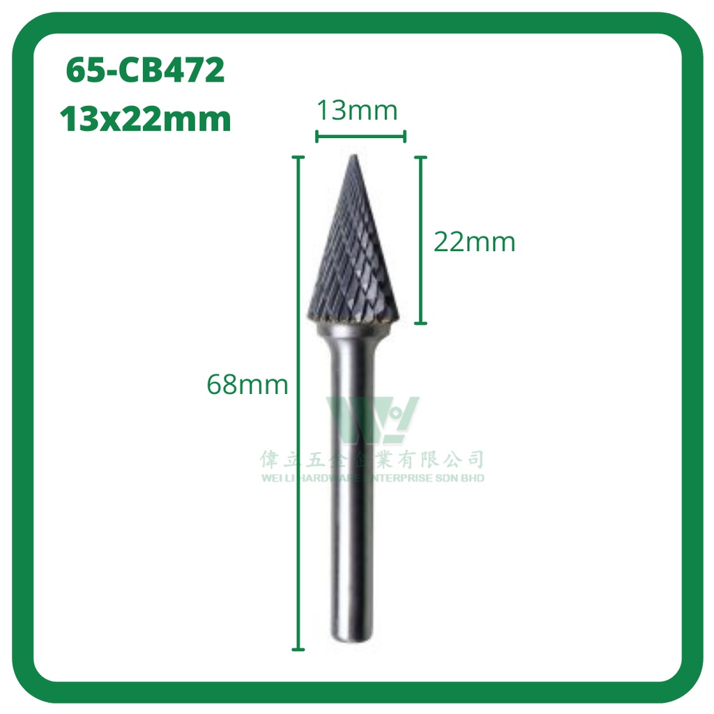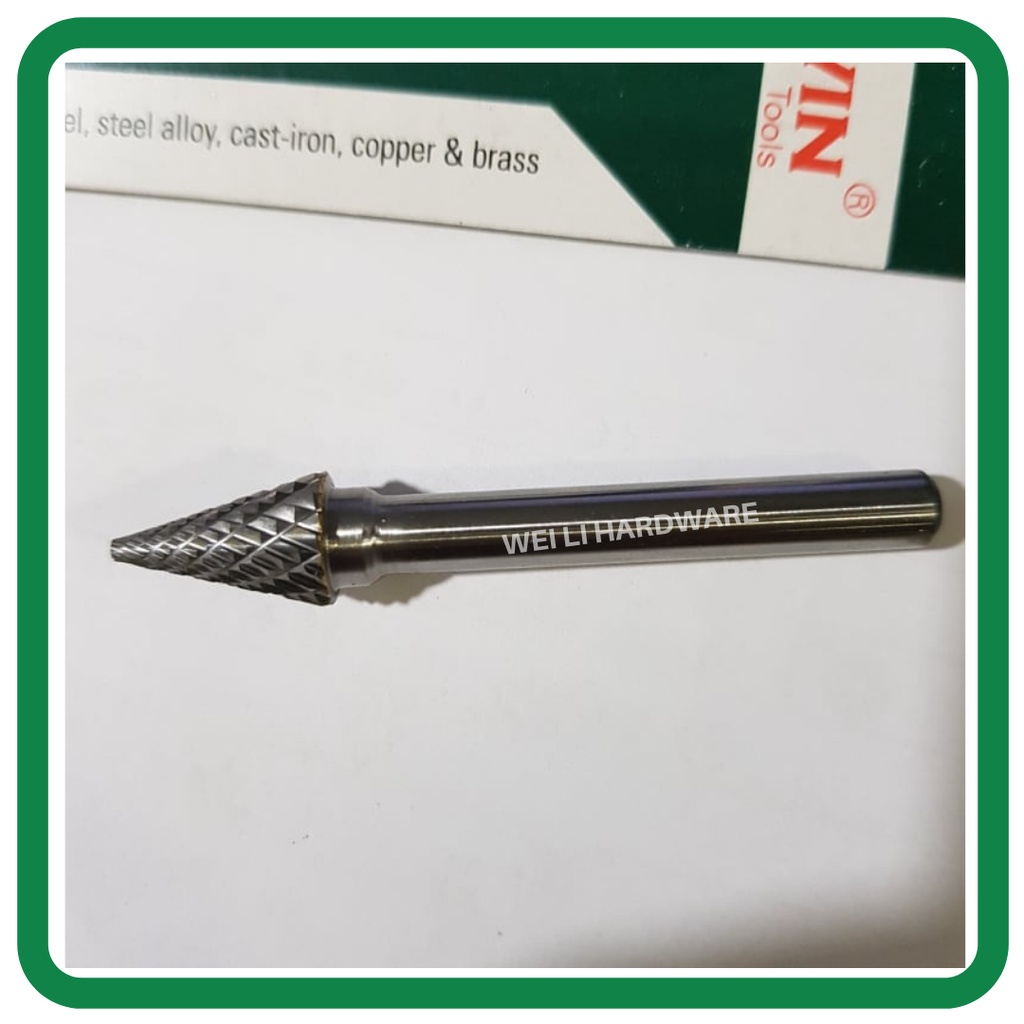 Merwin CORNICAL SHAPED 6mm Shaft Carbide Rotary Burr Double Cut Design Tungsten Carbide - Heavy Duty