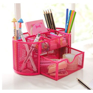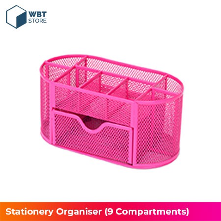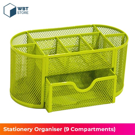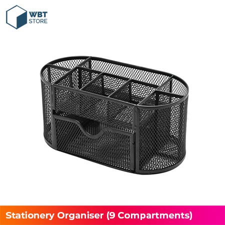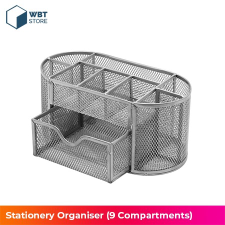 Mesh Metal Stationery Holder - 9 Storage Compartments Organiser for Pens and Stationery on Desk